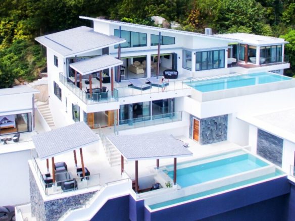 Impressive Thai Bali style, 8-bedroom sea view villa on the mountainside