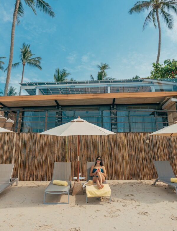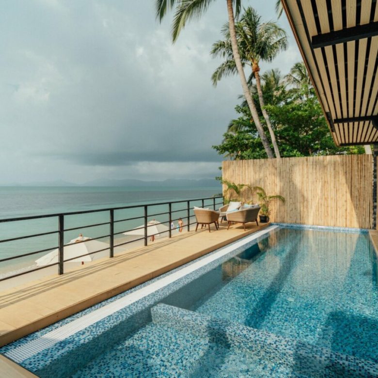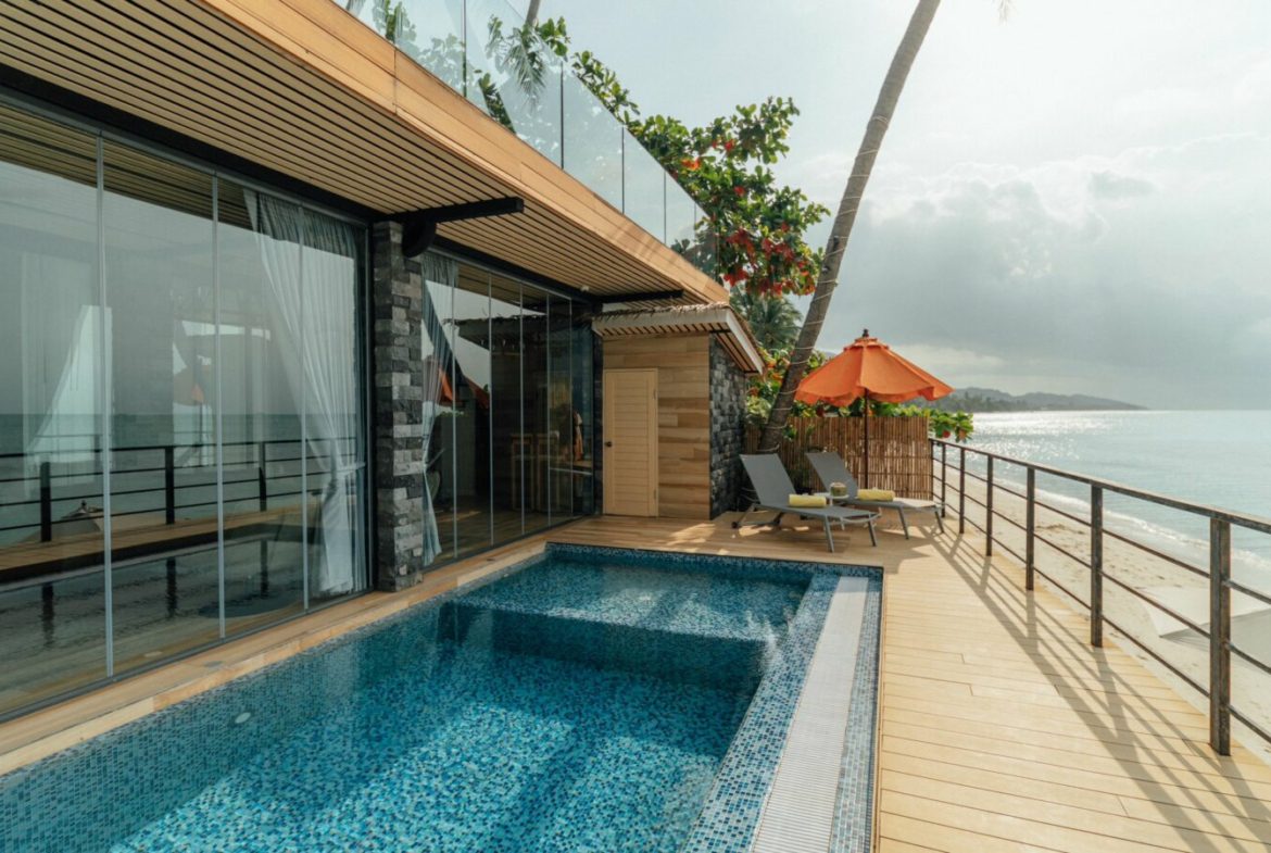 This brand new beachfront villa is located on a paradise beach Ban Tai with white sand and hanging palm trees and can be used both as a luxury holiday home and a venue for any event.