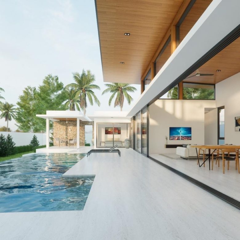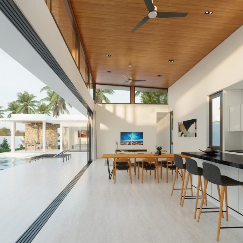 These modern style villas are located a stoneâs throw away from beautiful bangpor beach with its amazing restaurants and beautiful outlooks .