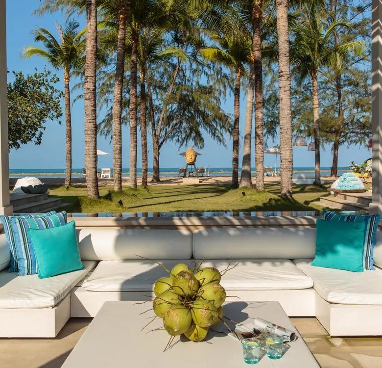 The villas face north, with views of the Choeng Mon peninsula straight ahead, and Koh Matlang to the east. The wide beach leads to a shallow, calm, and sheltered lagoon. Prevailing north-easterly winds provide a soothing sea breeze for most of the year.