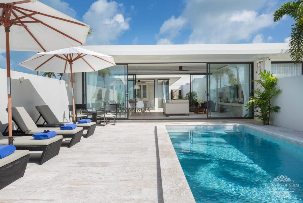 Absolute Beachfront. Each villa is only a few metres from the azure sea and has a gated access to the beautiful Plai Laem beach.
