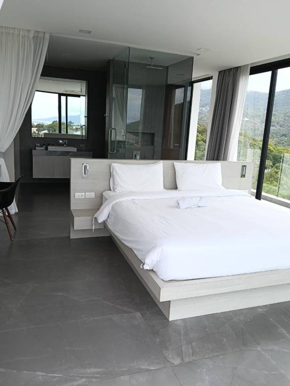Modern open-plan living and dining area with floor-to-ceiling glass Fully equipped Western kitchen Expansive terrace with breathtaking sea views Private infinity pool surrounded by lush tropical greenery Secure and private environment, perfect for both long-term stays and relaxing holidays