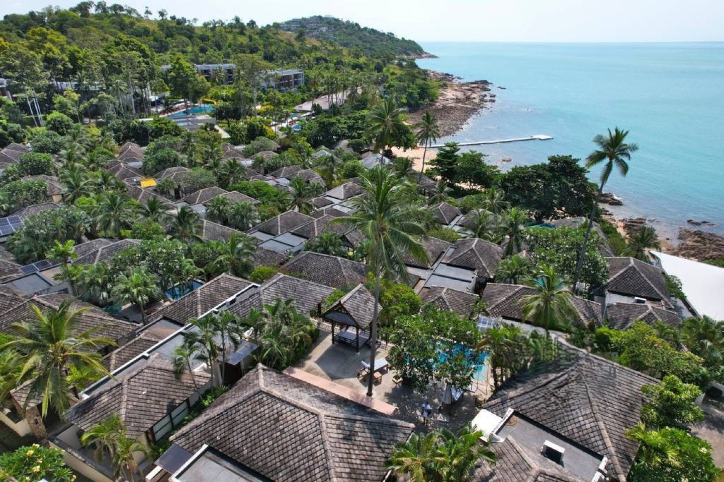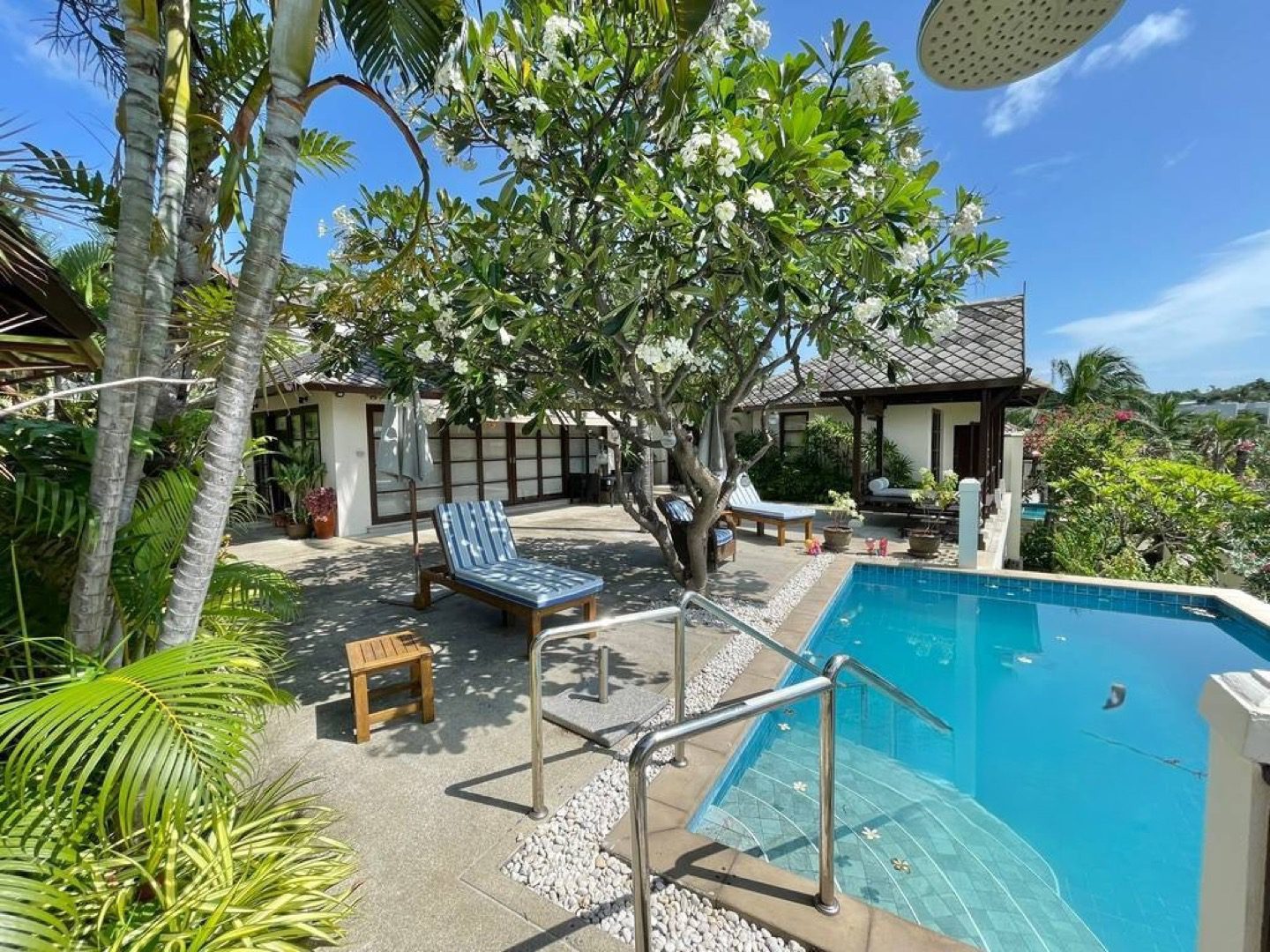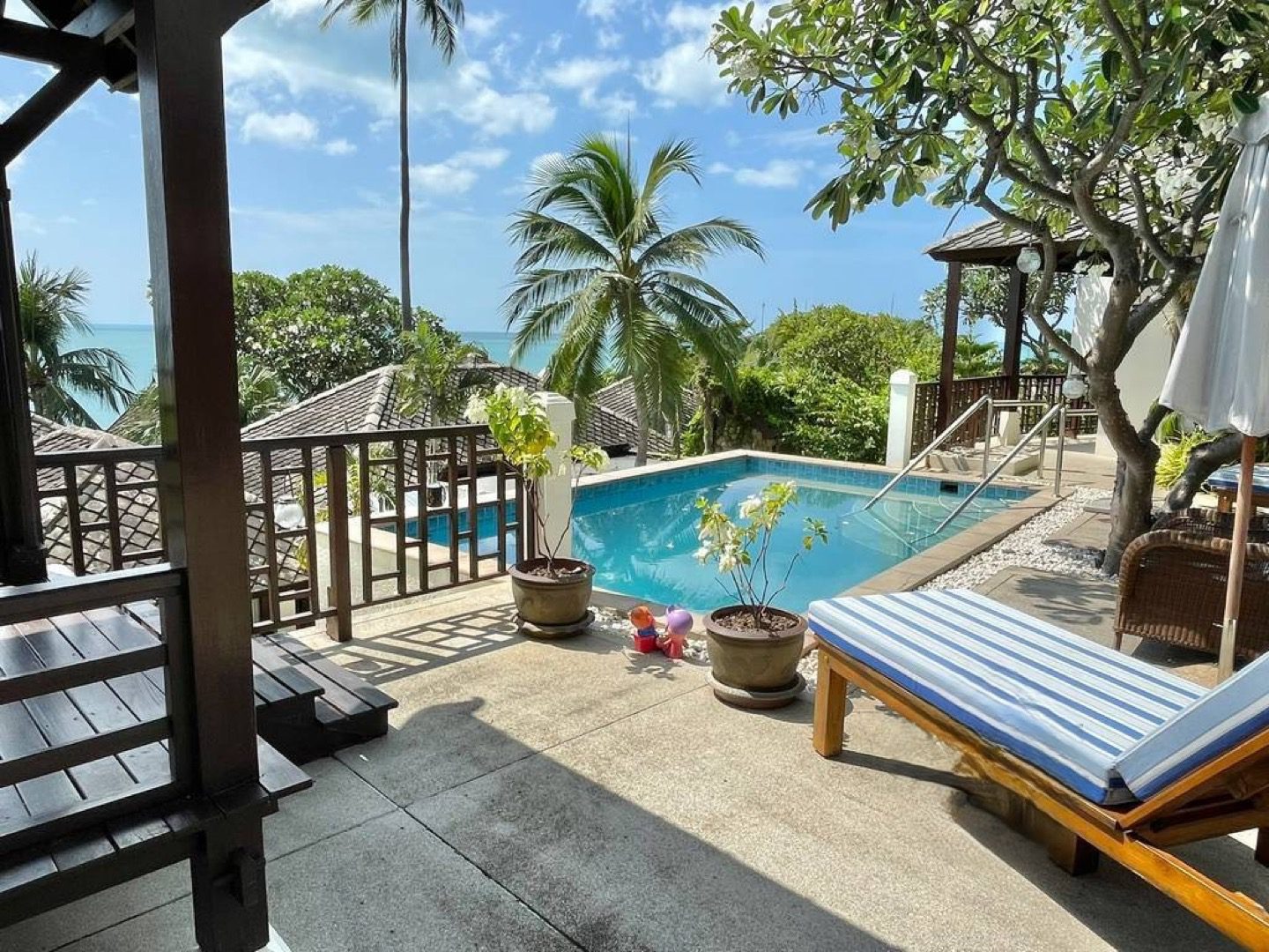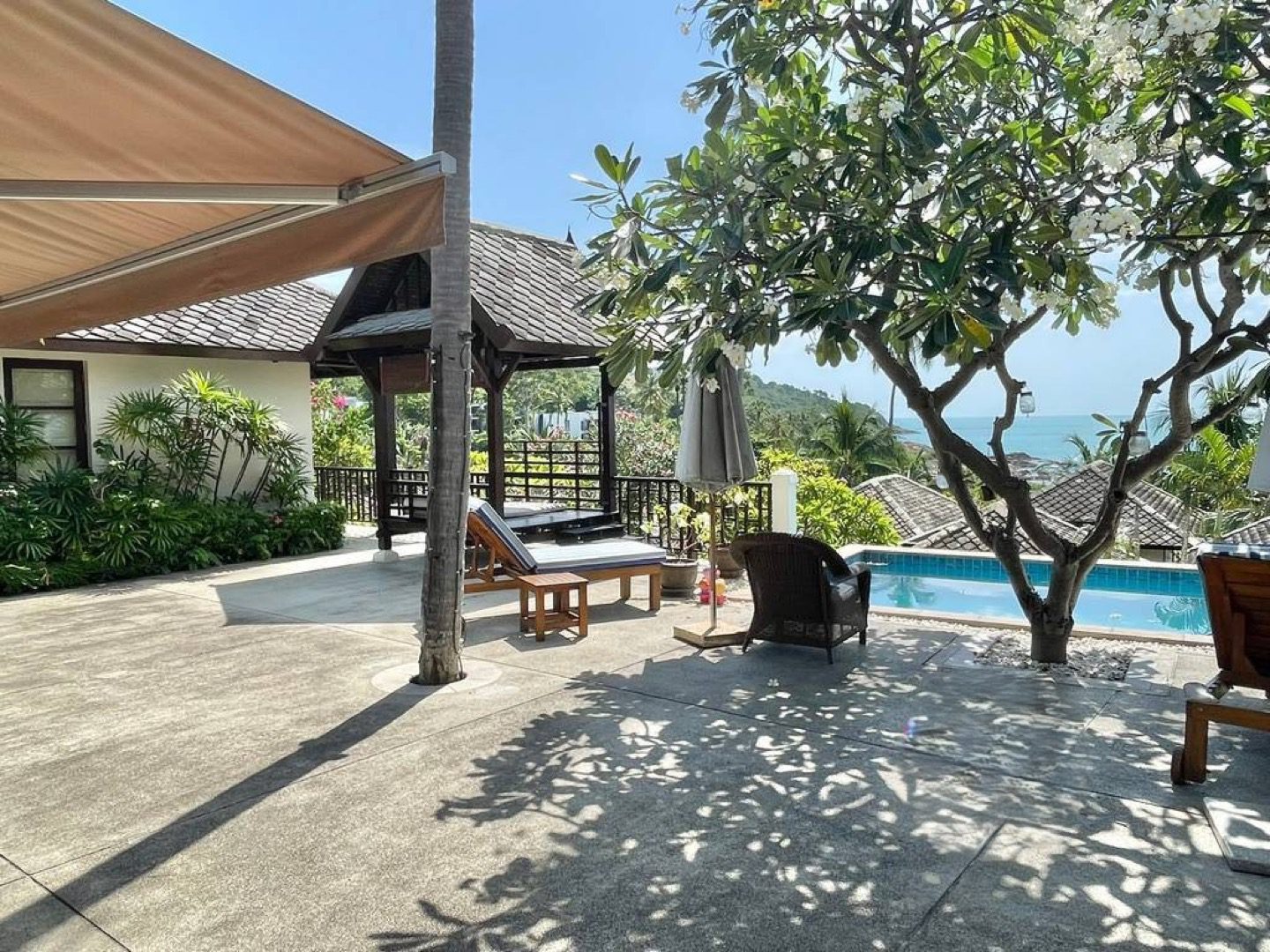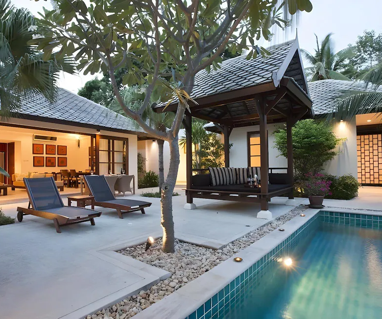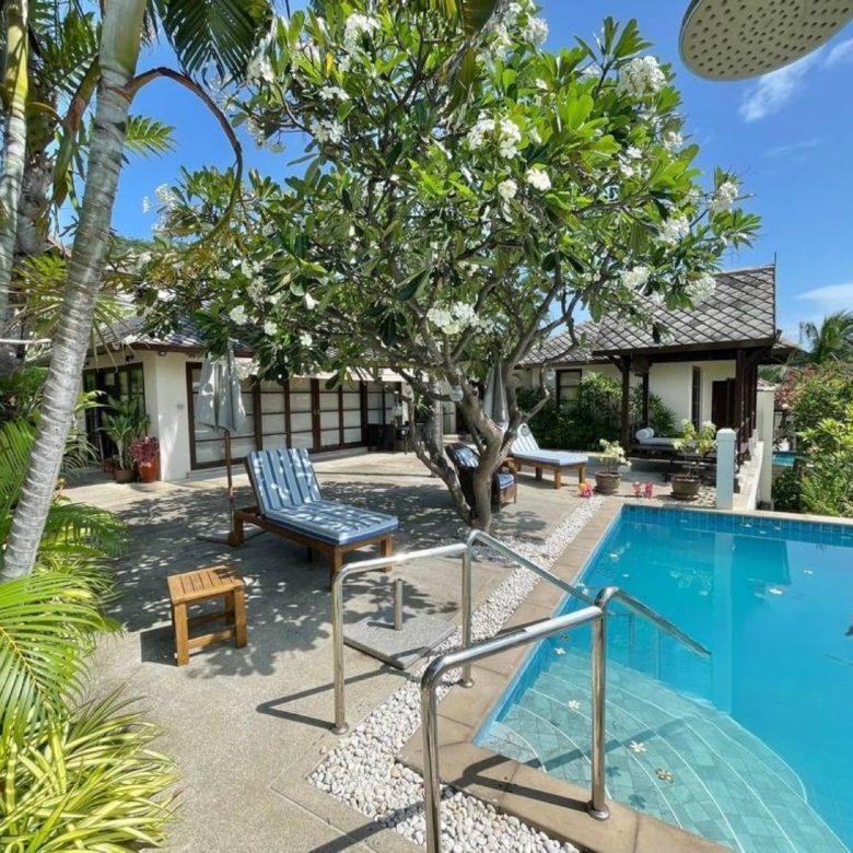 This exquisite Balineseinspired villa is positioned on a 500squaremeter plot within an exclusive gated enclave on Koh Samui’s northeast coast. Designed around a central courtyard terrace, the residence comprises three separate pavilions, each blending contemporary elegance with traditional Thai touches. A private saltwater pool overlooks the turquoise sea, creating a serene setting ideal for both personal retreats and strong rental returns.