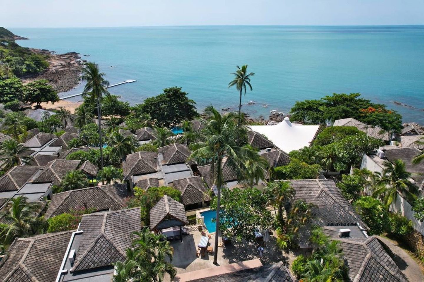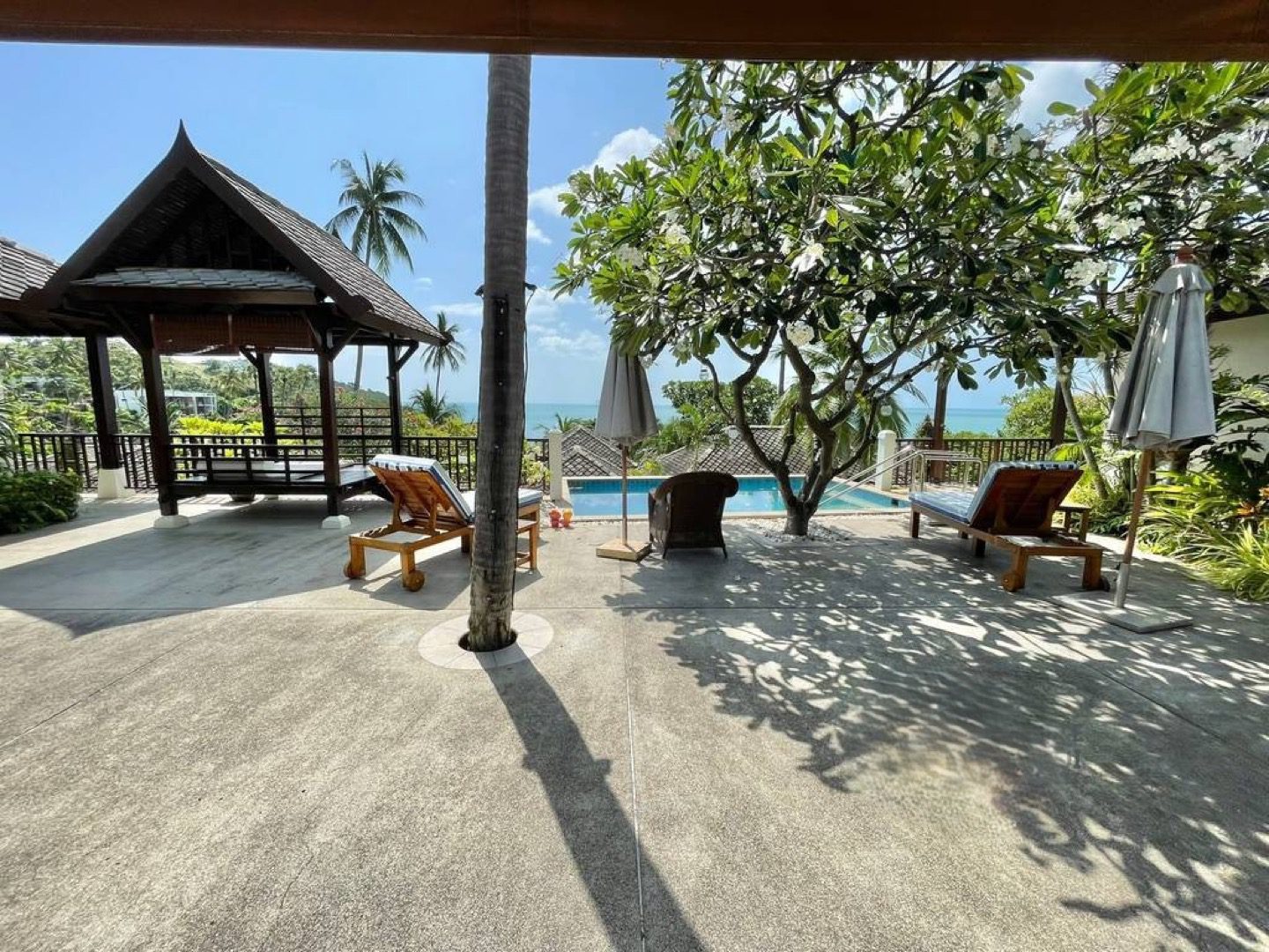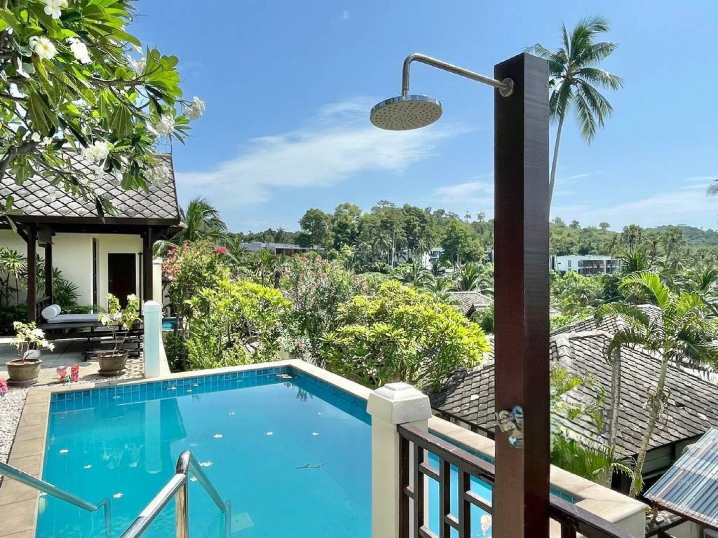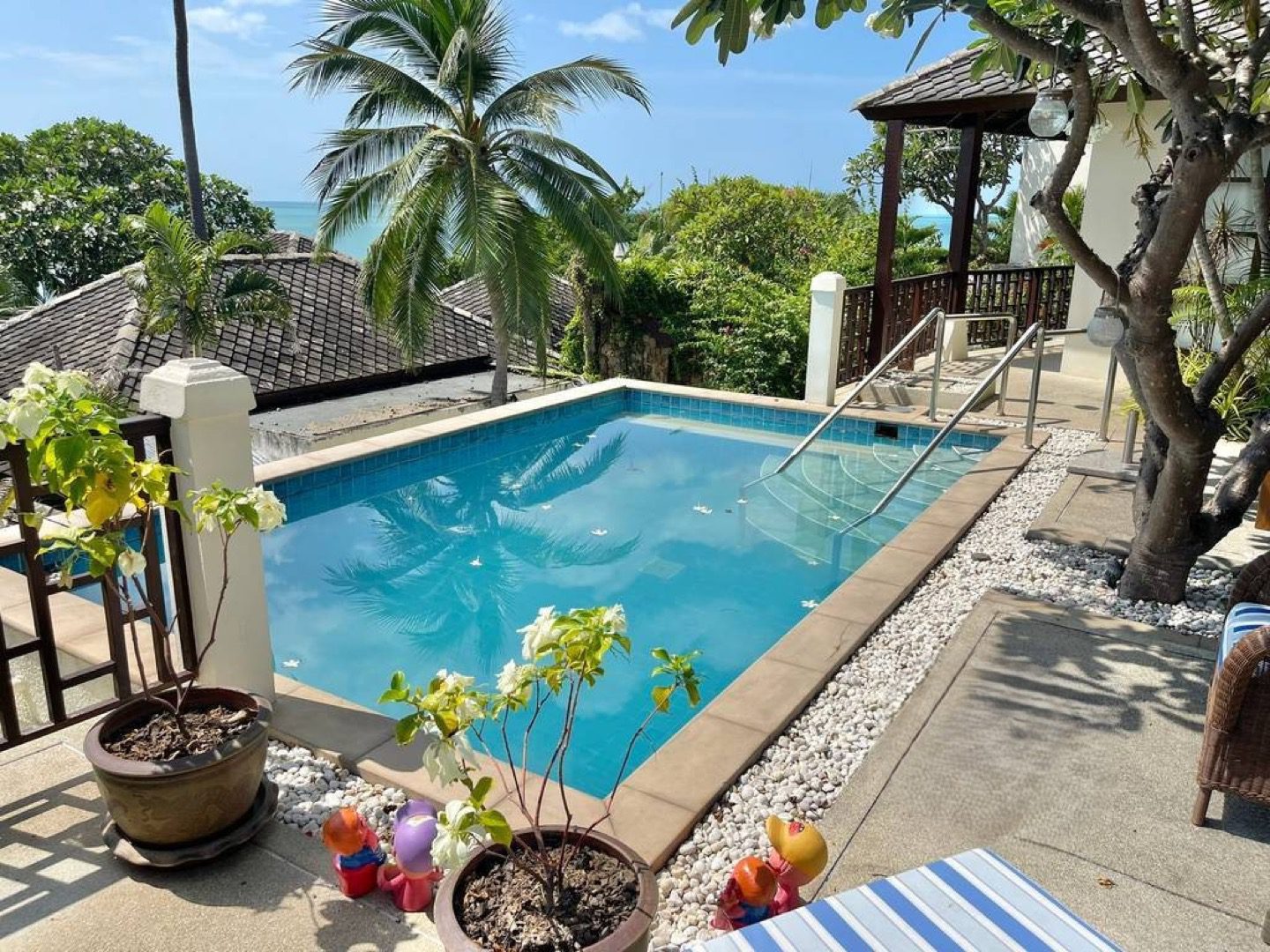 This exquisite Balineseinspired villa is positioned on a 500squaremeter plot within an exclusive gated enclave on Koh Samui’s northeast coast. Designed around a central courtyard terrace, the residence comprises three separate pavilions, each blending contemporary elegance with traditional Thai touches. A private saltwater pool overlooks the turquoise sea, creating a serene setting ideal for both personal retreats and strong rental returns.