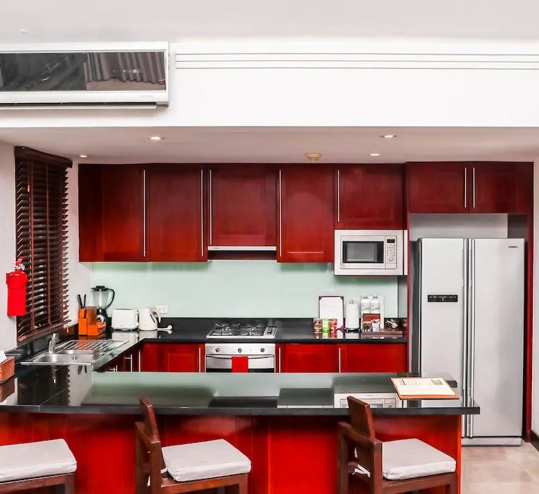 Located just two minutes from Cheong Mon Beach and five minutes from vibrant Chaweng, the villa enjoys easy access to supermarkets, the airport, and nearby destinations such as Bangrak, Bophut, and Maenam. A beachfront restaurant lies only steps away, while the expansive communal pool and beach access are just a oneminute walk. The neighboring Hyatt Regency provides a perfect spot for sunset cocktails, adding to the lifestyle appeal. Residents benefit from 24 hour security, golfbuggy transport, a reception area, and a backup generator, ensuring both convenience and peace of mind.
