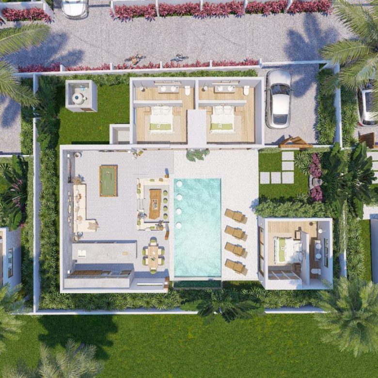 These 3-bedroom villas have been designed to maximize space, light, and the well-being of its occupants. Every detail of its layout has been carefully studied to create a perfect balance between functionality and aesthetics. Whether in the open living spaces, spacious bedrooms, or outdoor areas dedicated to relaxation, each element reflects the commitment to offering an incomparable residential experience.