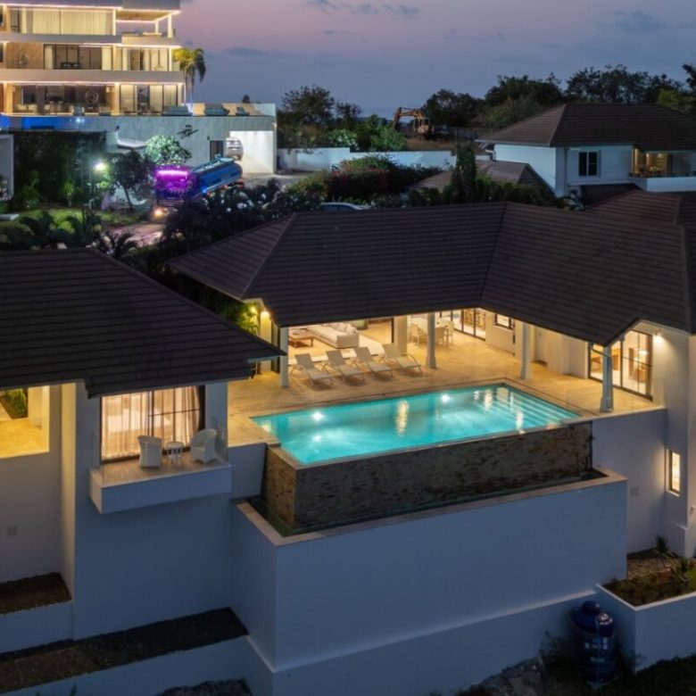 Experience the epitome of luxury living in this newly renovated and furnished 4-bedroom, 5-bathroom villa boasting stunning sunrise sea views overlooking Choeng Mon beach and Koh Fahn island.