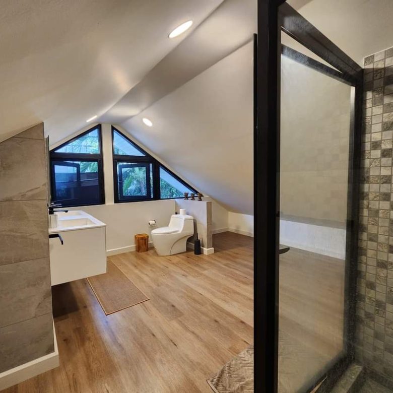 - Versatile Loft Retreat: Ascend the stylish steel and wood staircase to discover a versatile upstairs loft. This bright space includes a comfortable lounging area, an additional bathroom, and access to a private balcony offering tranquil views of the sea and the charming neighborhood – your perfect spot for morning coffee or sunset relaxation.