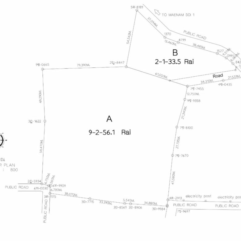This land has a Nor Nor 3 Nor with the Chanote in the process. It is a two plot land, plot A has 9 Rais and plot B is 33.5 Wah. The price has decreased six million baht.