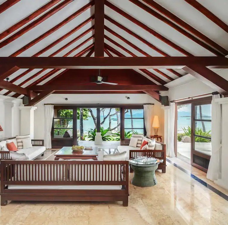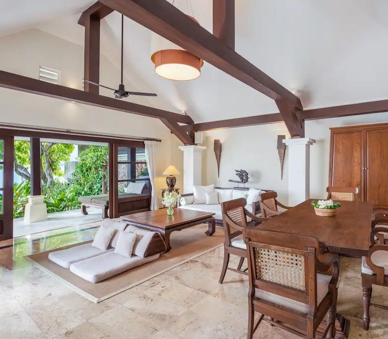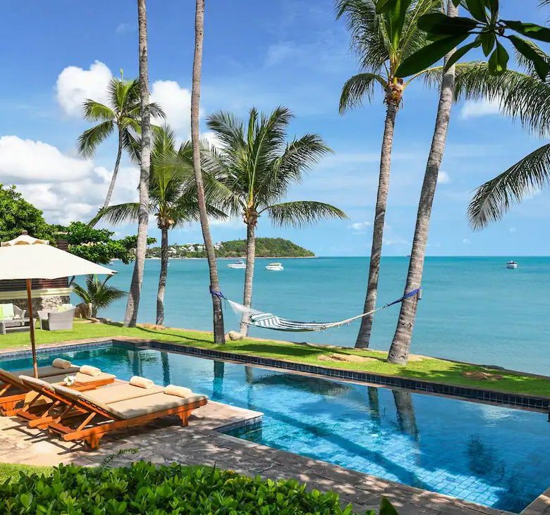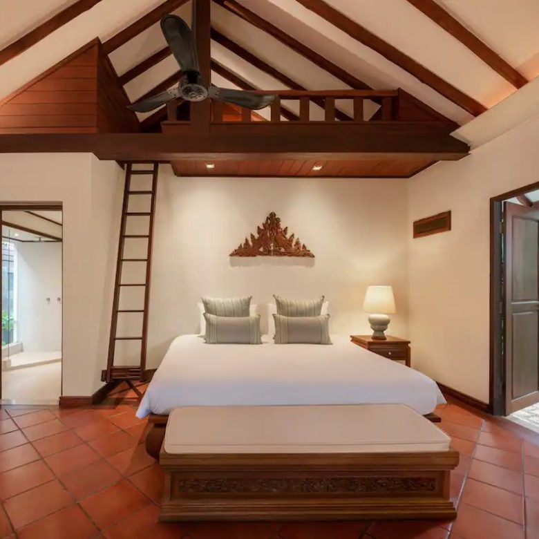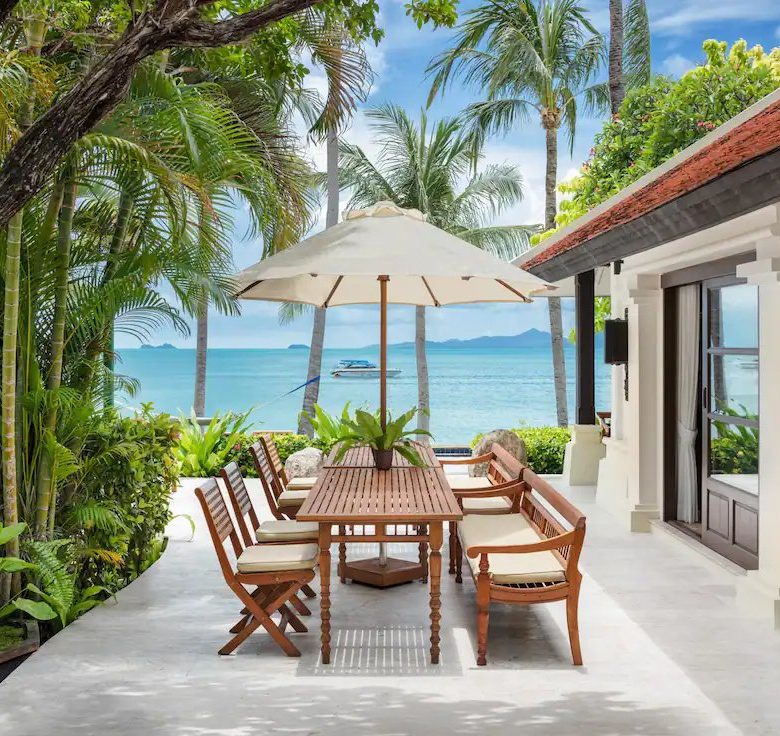 The pavilions share a 1,600 square metre walled garden with Thai artefacts and a large double hammock in a picture postcard setting just perfect! Surrounded by lush vegetation and ancient coconuts and tropical trees, the setting preserves everyone’s privacy.