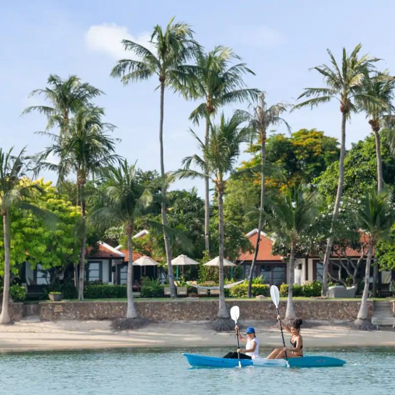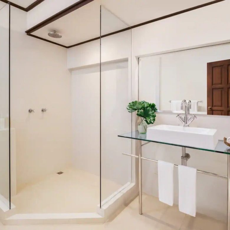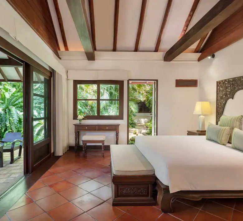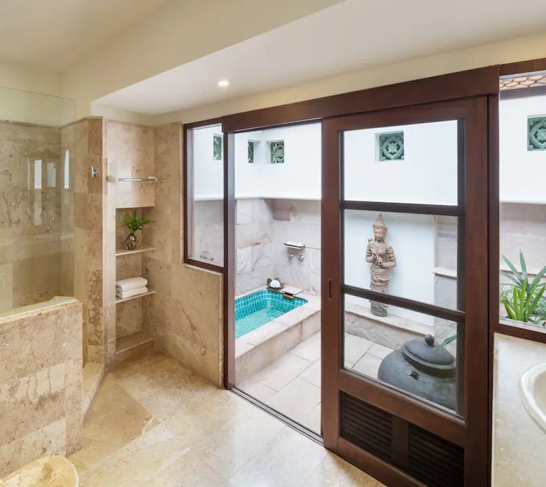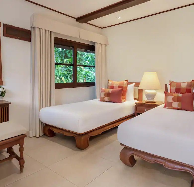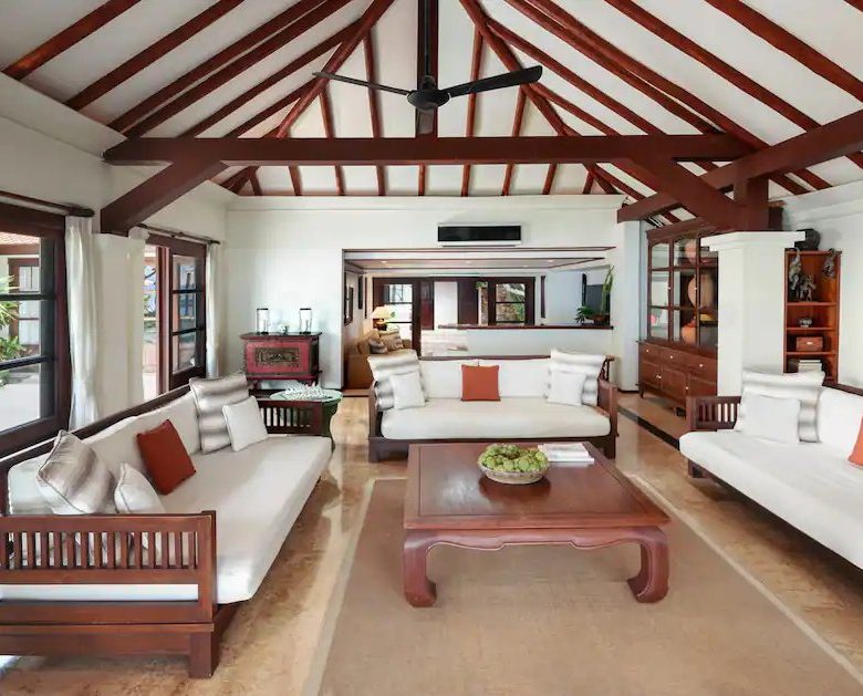 The pavilions share a 1,600 square metre walled garden with Thai artefacts and a large double hammock in a picture postcard setting just perfect! Surrounded by lush vegetation and ancient coconuts and tropical trees, the setting preserves everyone’s privacy.