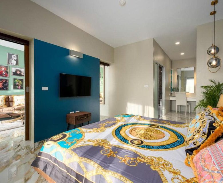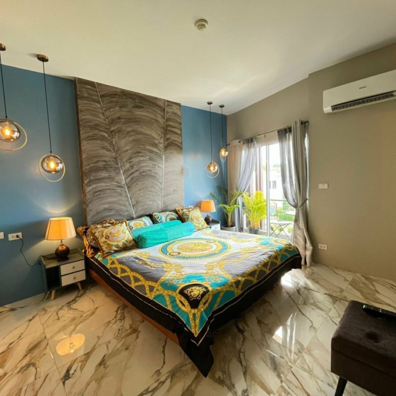 Just re-listed for sale,this beautiful restyled condo is located right across the beach at the highly popular replay condominium development and is a top floor unit that gives Seaviews towards the W Hotel cape and the gorgeous Khaophra mountains and views over the park in the estate .