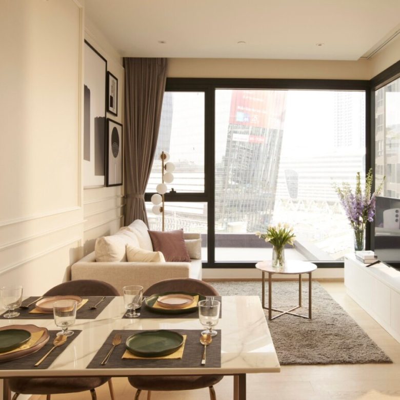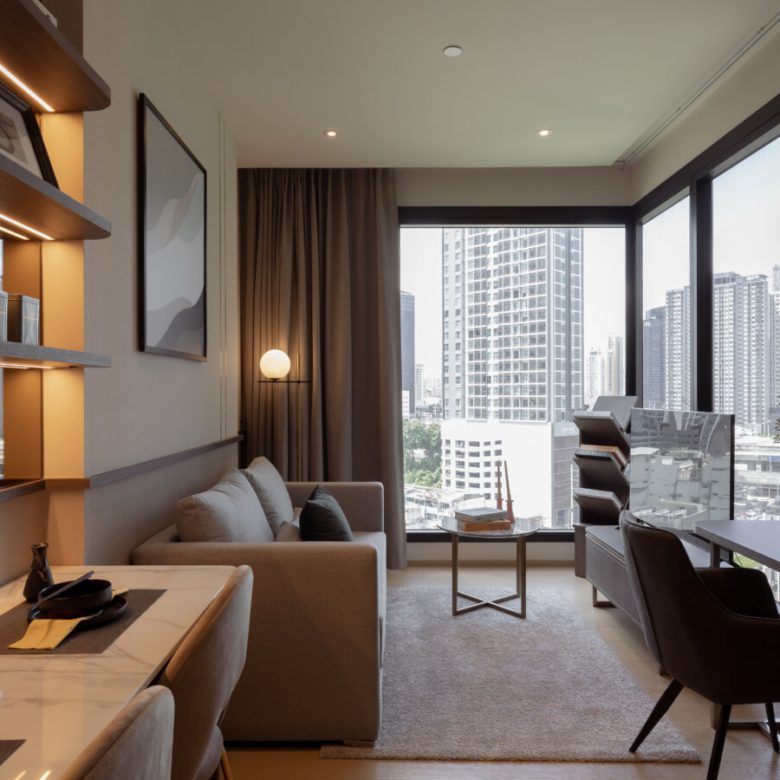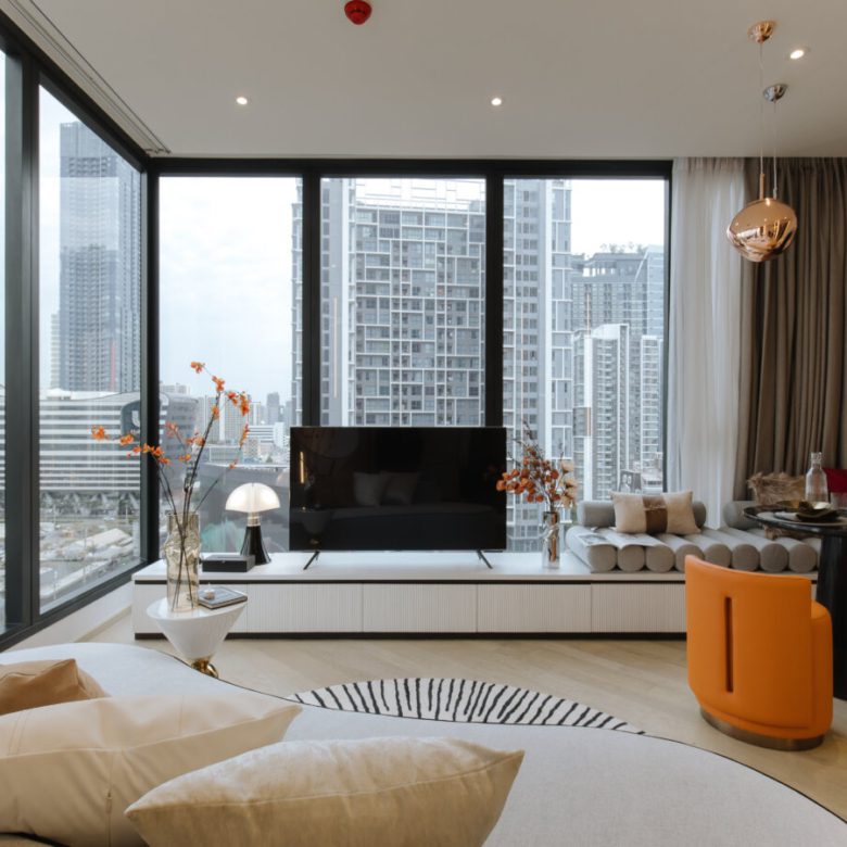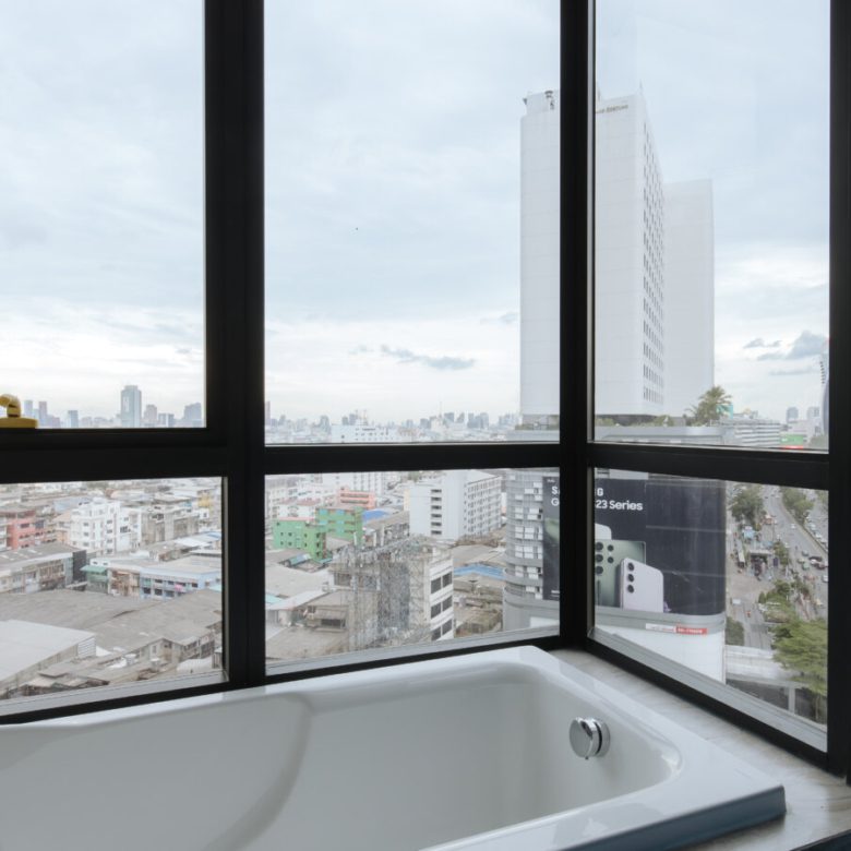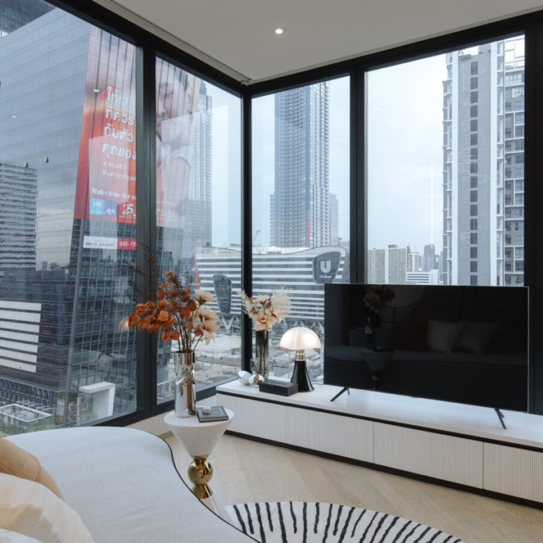 All corner window unit with bay window. Since every room is a corner unit. The window space is maximized. This ingenious design give each room a sweeping city view and afford much improved ventilation.