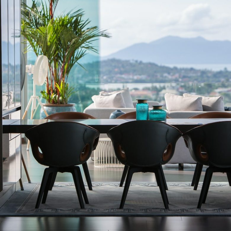 Directly enclosed to the Living room is the spacious dining areas that allow for poolside dining and unique dinner events at the same time. Also here the floor to ceiling windows can be opened and removed turning the dining room into a poolside patio to enjoy the ocean breeze maximizing the unique Bayview atmosphere, light and space.