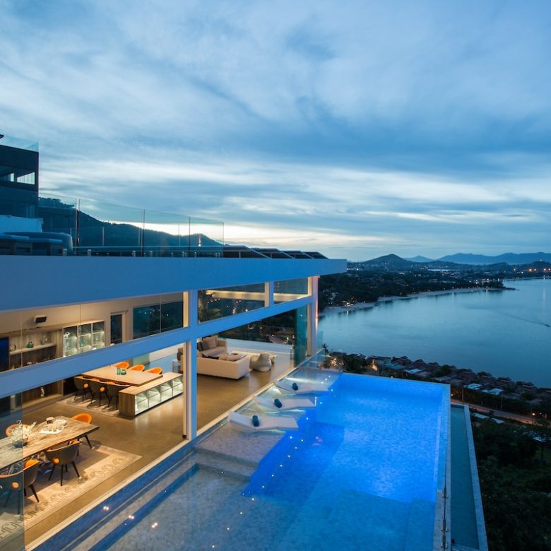 This Villa features ultra-modern architecture with 4 bedrooms, stylish design, infinity-edge sea-view swimming pool, on site Pool Billiard, cinema and more. The spacious clear and stylish design captures the beauty of the landscape and offers a bright view over the amazing beauty of Chaweng Bay throughout day and night.