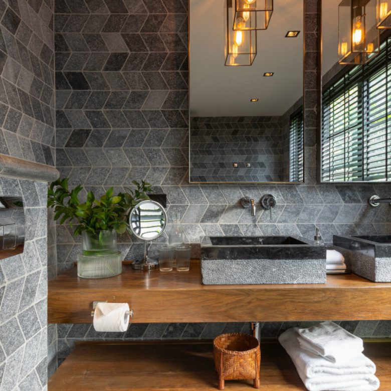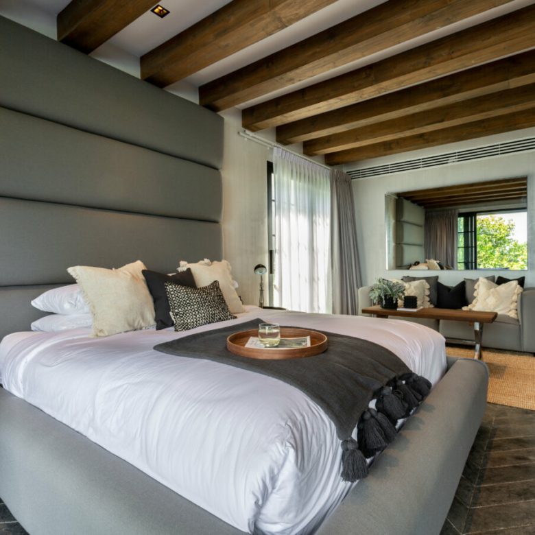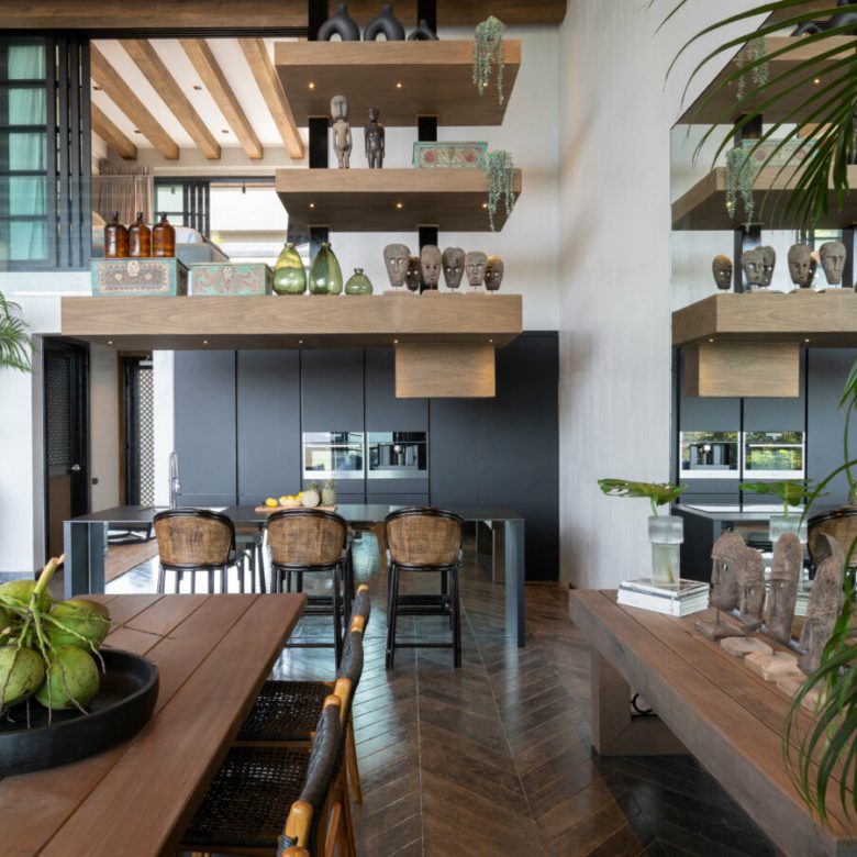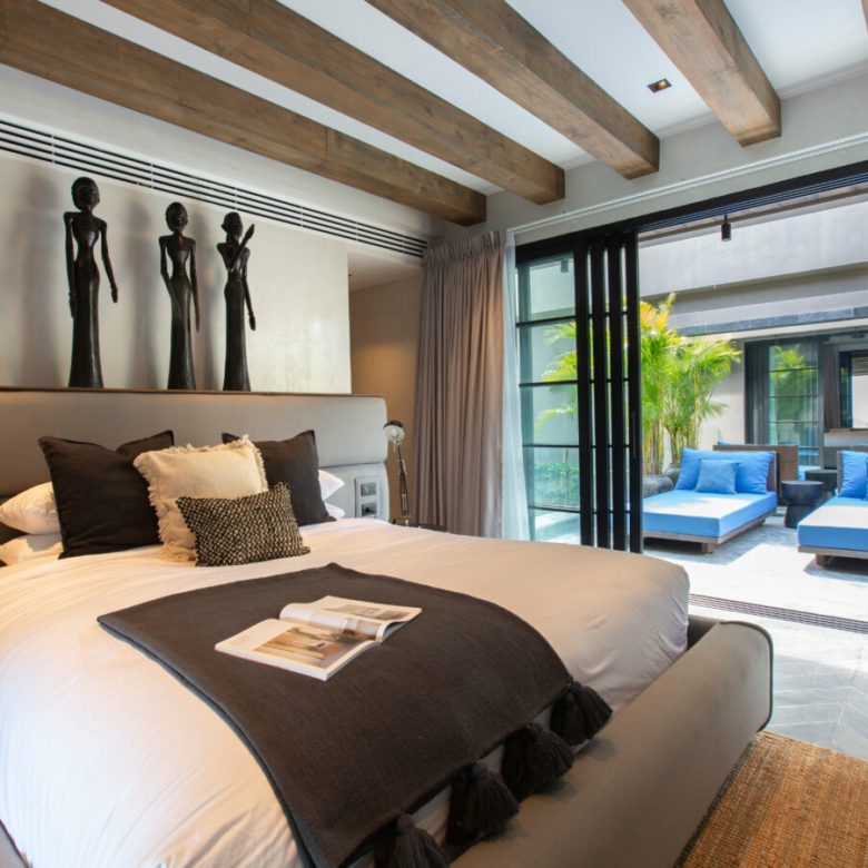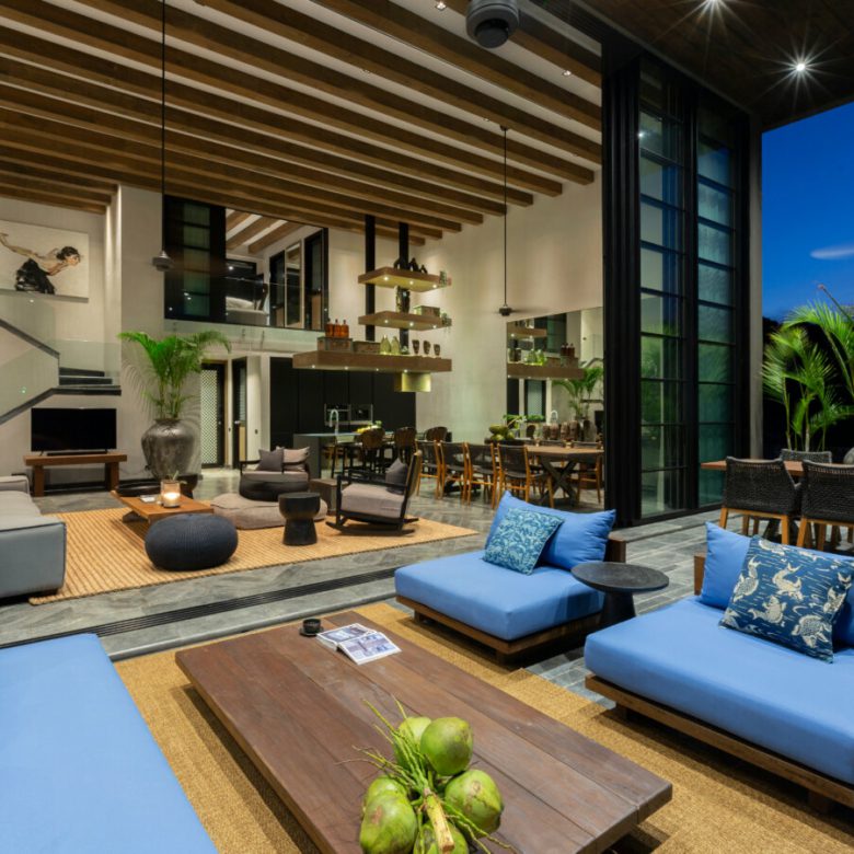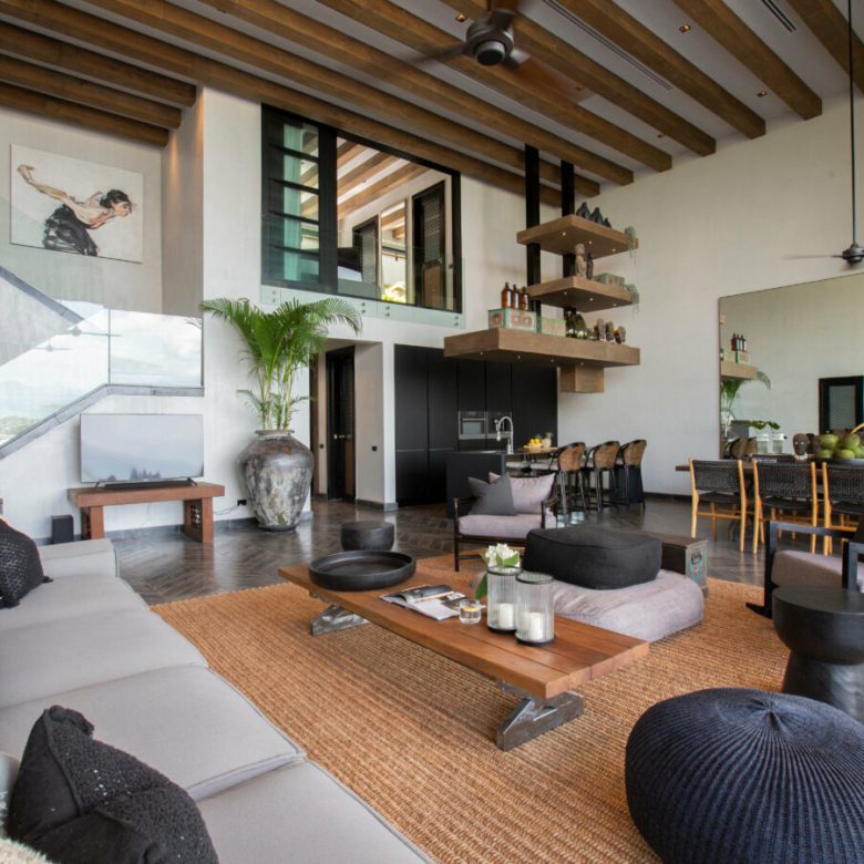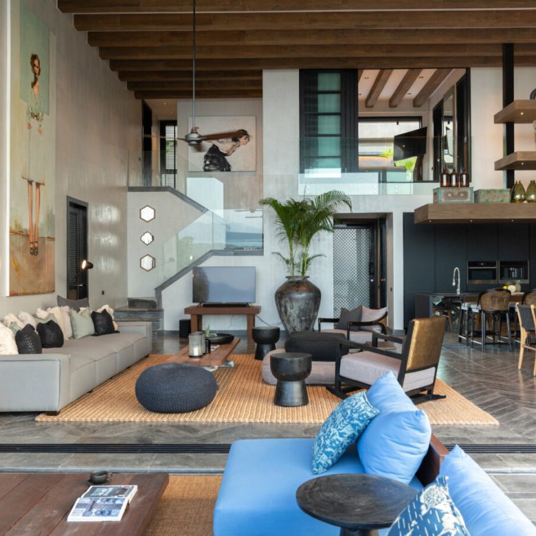 This Villa combines an abundance of natural materials into a sophisticated island living space. The grey marble and limestone flooring throughout is perfectly designed and laid with geometric patterns, cleverly offset by sisal rugs and walls plastered with white-grey clay.