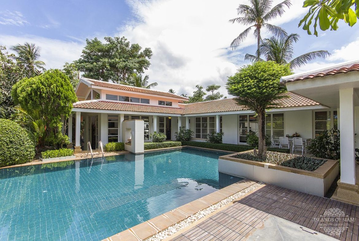 Baan Arun is arguably one of Bangrak’s best kept secrets, offering 4 spacious bedrooms and 3 en-suite bathrooms and is extremely reasonably priced in the rental market. This hidden gem with quick access to Chaweng; the famous Fisherman’s Village and also the airport, is not only perfectly situated but amazingly presented. The images speak for themselves regarding the perfectly kept landscaped gardens, huge family private pool and beautifully decorated spacious internal living space. This villa is perfect for both friends and families.