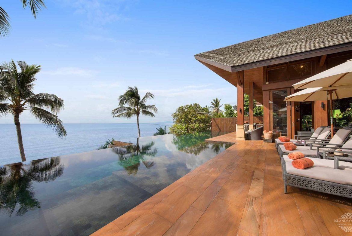 Located in the Lamai area, this multi-tiered architectural jewel is the perfect beach retreat for large families and groups, thanks to its 5 large bedrooms, generous-sized infinity pool, communal poolside deck, fully-integrated entertainment system, gourmet kitchen and dramatic en-suite bathrooms built into the beach’s natural rock formation.