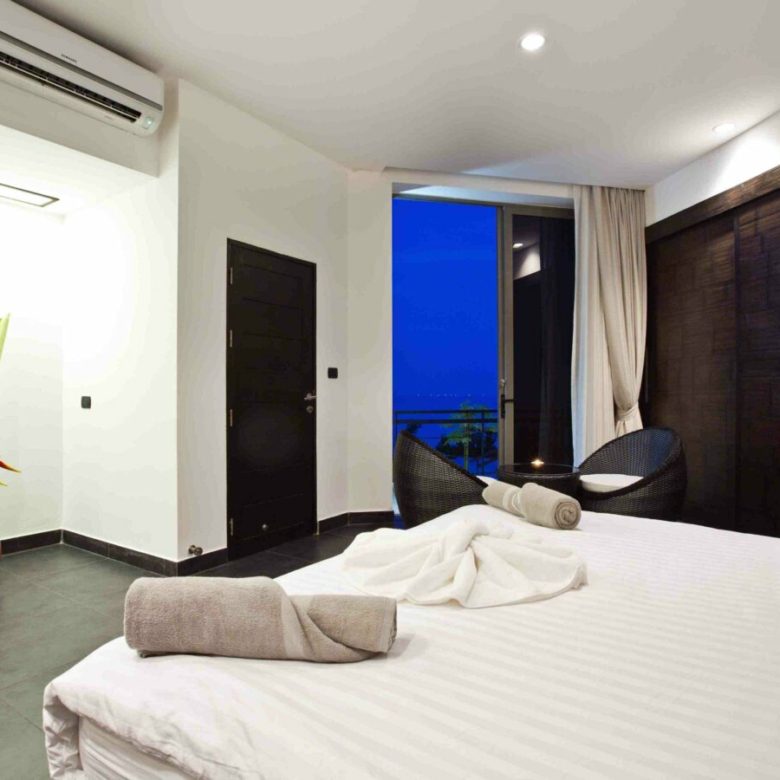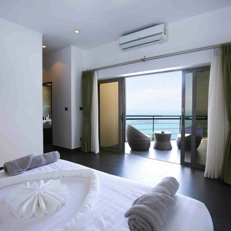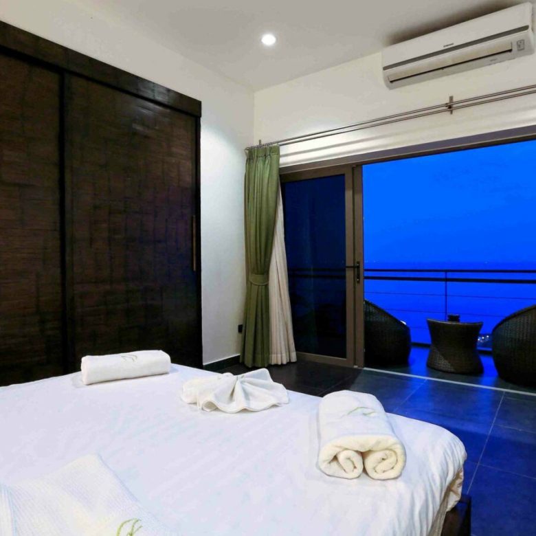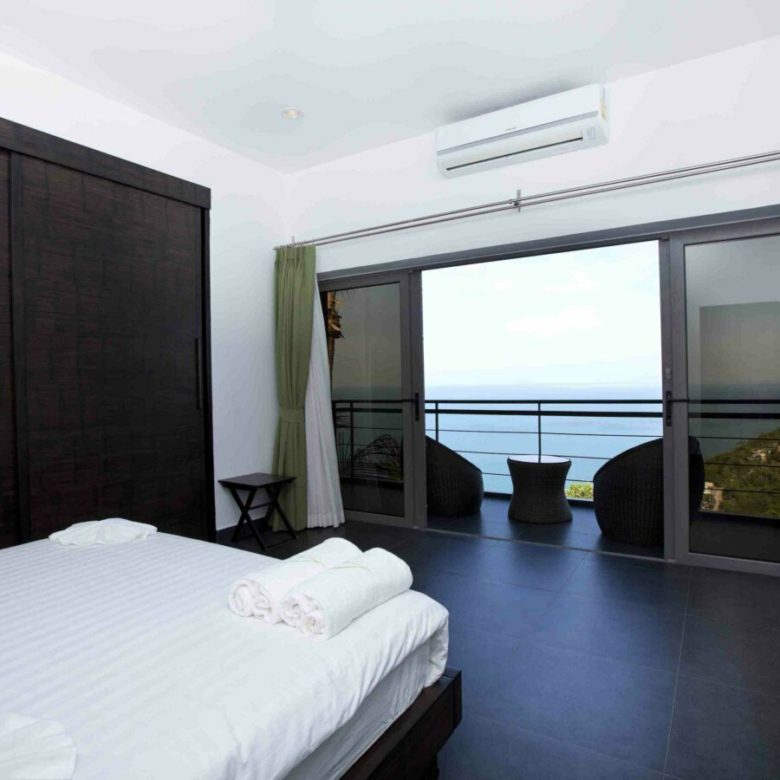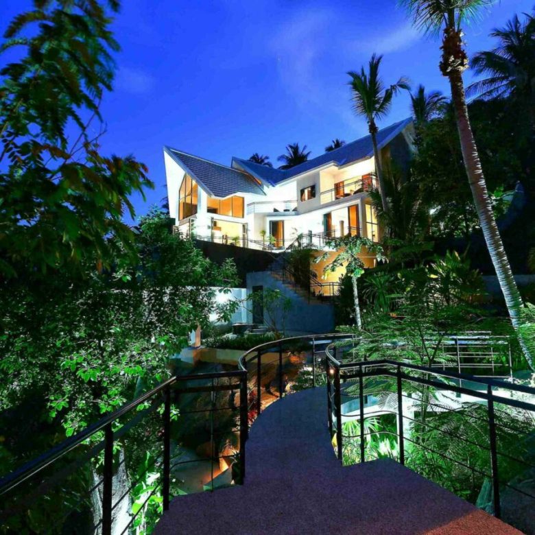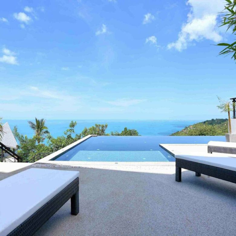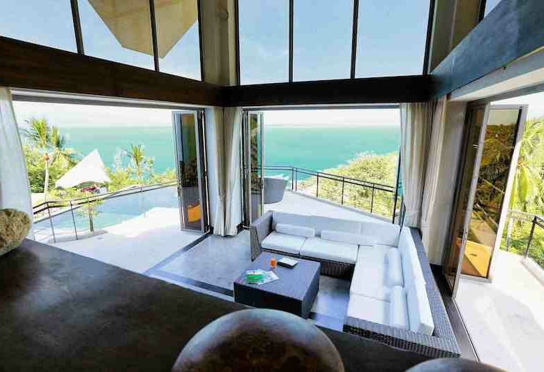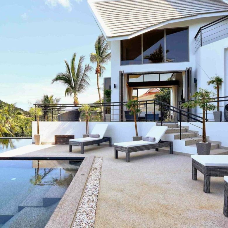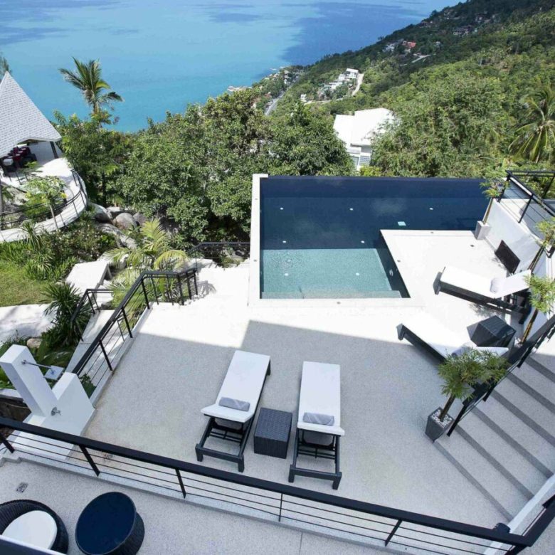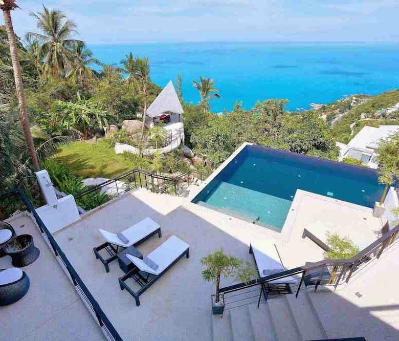 Welcome to Baan SeThai, a beautiful villa that offers you all this and more. Located on a hilltop in a prime area of the island, this villa boasts an award-winning design that blends seamlessly with nature. With five spacious bedrooms, six bathrooms, a fully equipped kitchen, and a large living area, this villa can comfortably accommodate up to 12 guests. The villa features a 6-foot cathedral roof and a glass facade that let in plenty of natural light and keep the interior cool. The villa also has a 15-meter L-shaped pool that follows the contour of the building, offering panoramic views of the ocean and the surrounding islands.