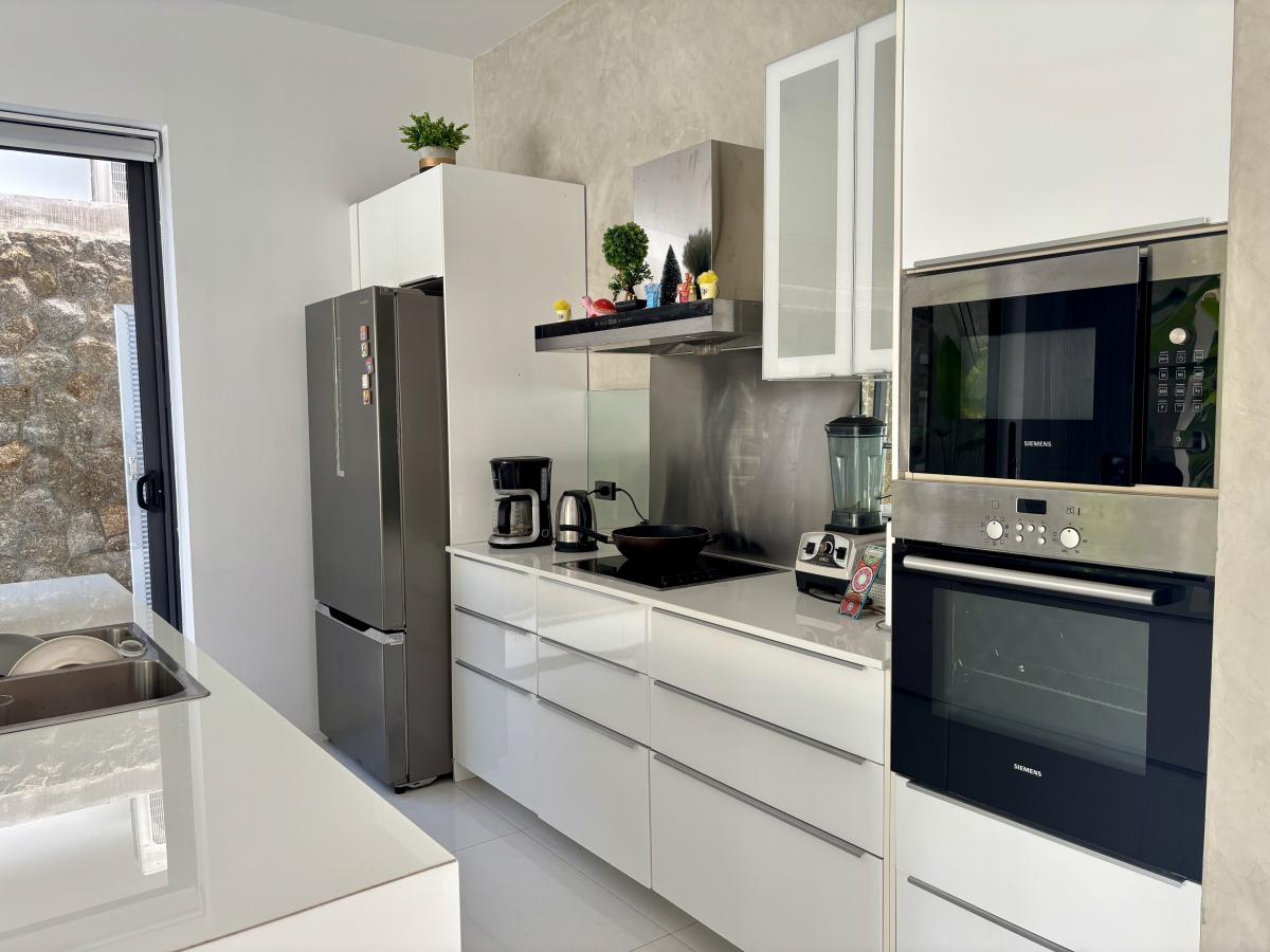 The villa features bright open plan living and dining areas that flow seamlessly to the outdoor terrace and swimming pool. Each of the three bedrooms comes with its own bathroom, ensuring privacy and comfort for family living or hosting guests. A fully equipped kitchen and stylish interiors make this property immediately ready for you to move in and enjoy.