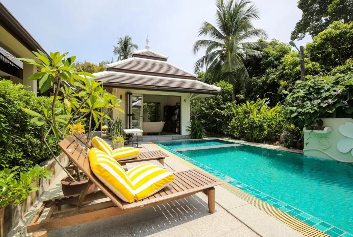 Nestled in the peaceful southern coast of Koh Samui, in Bang Kao, the villa is a mere 80 meters from the idyllic Bang Kao beach. Residents can enjoy the gentle sea breeze and the soothing sounds of the waves, complemented by the villa’s lush landscaping that echoes the tropical beauty of the surroundings.