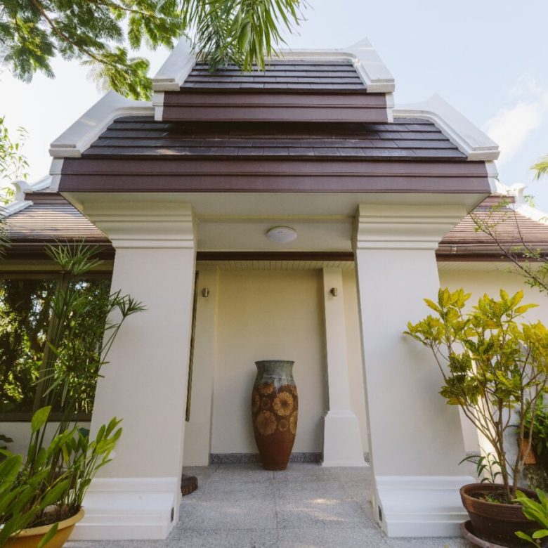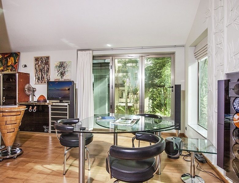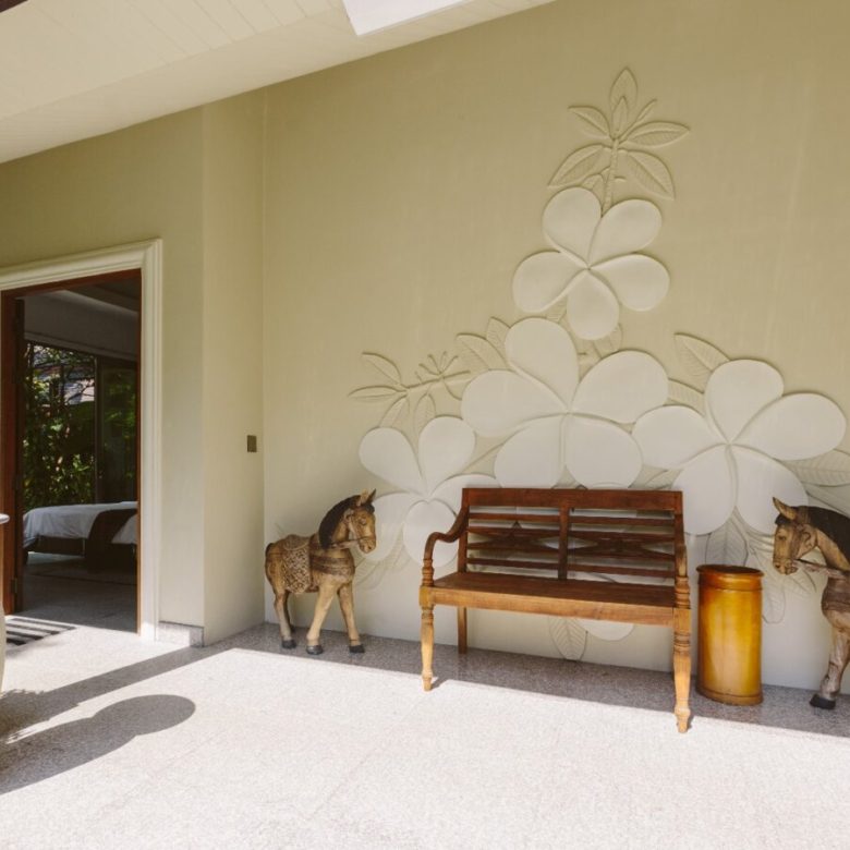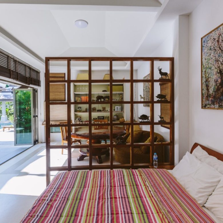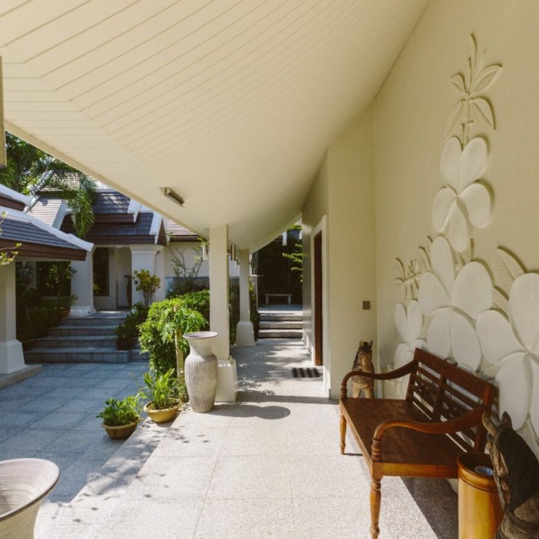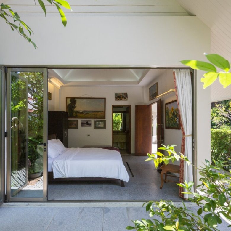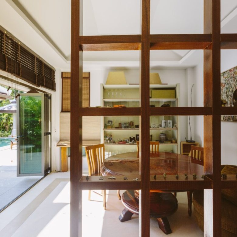 Enhanced by the use of eco-friendly materials and modern technologies, this villa not only respects the local climate needs but also offers a sustainable living option. The interior reflects a balance of heritage and modernity, featuring wood floors, shutters and a central terrace that invites natural light and promotes connectivity. The decor is accentuated with Thai art and textiles, adding a touch of cultural heritage to the contemporary design.