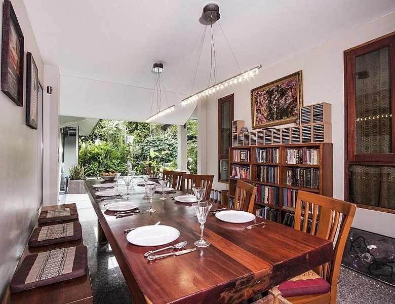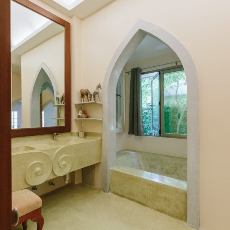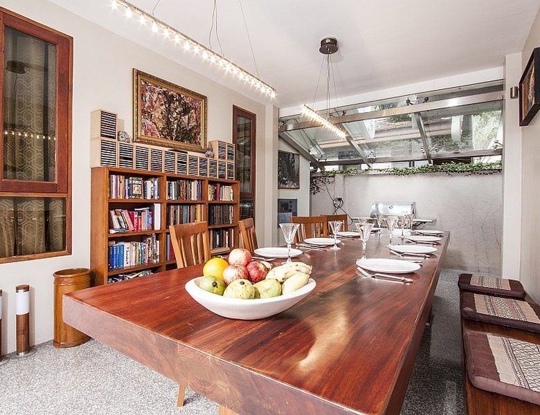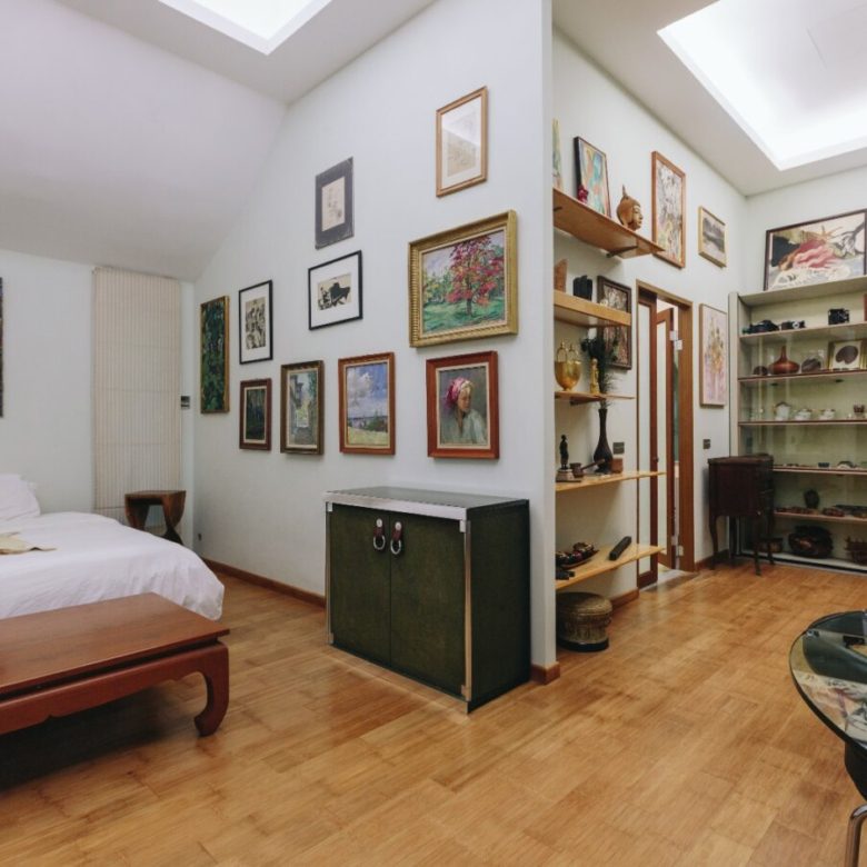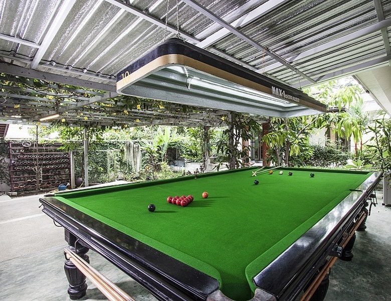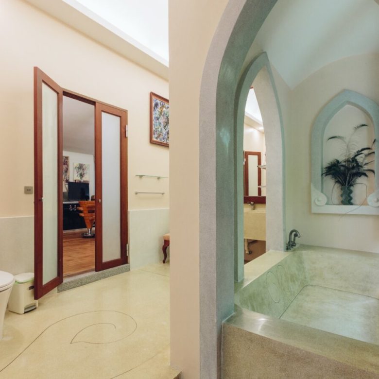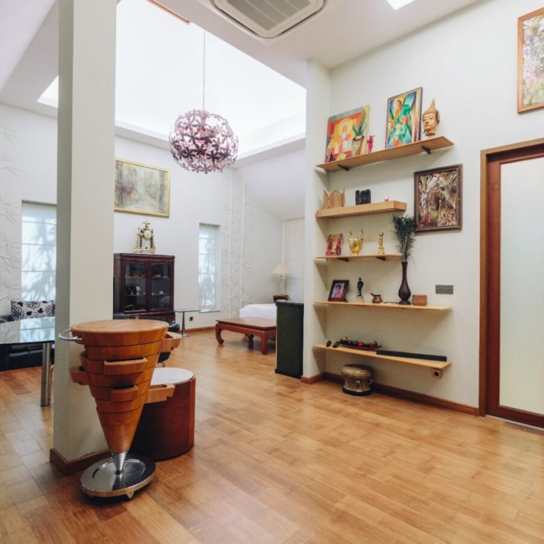 Enhanced by the use of eco-friendly materials and modern technologies, this villa not only respects the local climate needs but also offers a sustainable living option. The interior reflects a balance of heritage and modernity, featuring wood floors, shutters and a central terrace that invites natural light and promotes connectivity. The decor is accentuated with Thai art and textiles, adding a touch of cultural heritage to the contemporary design.