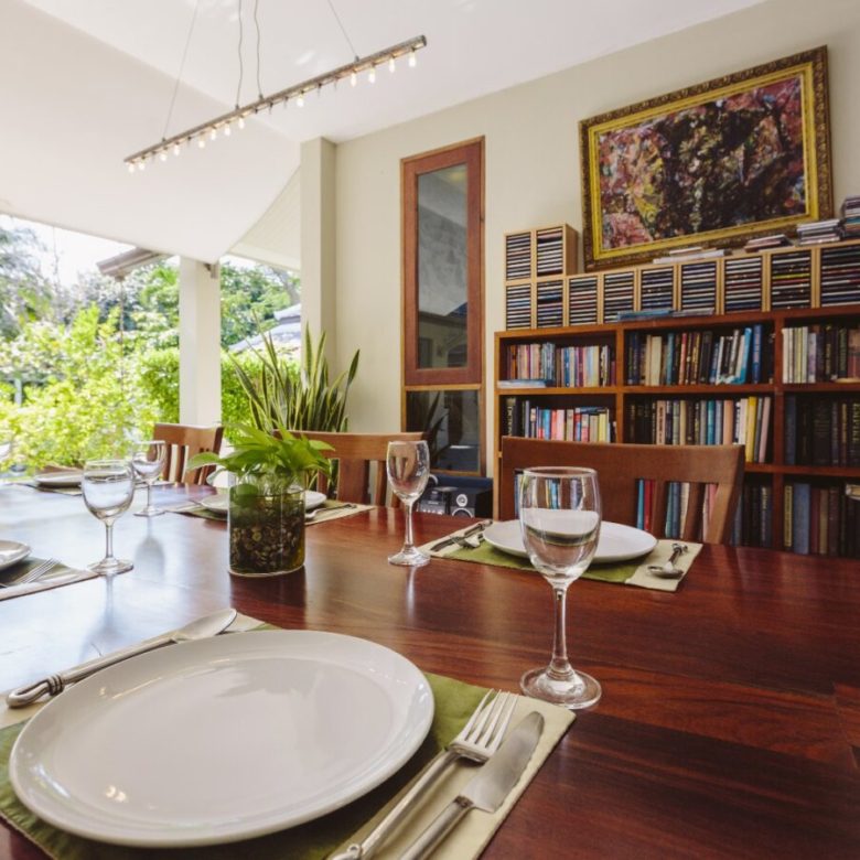 For the landscaping, the villa boasts a variety of tropical plants and trees, natural stone rocks, and pebbles, creating a picturesque setting that complements the villa’s architecture. The garden terraces offer a cool, shaded region, perfect for relaxation and enjoying the panoramic views of the garden.