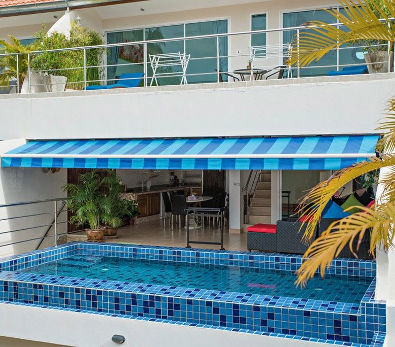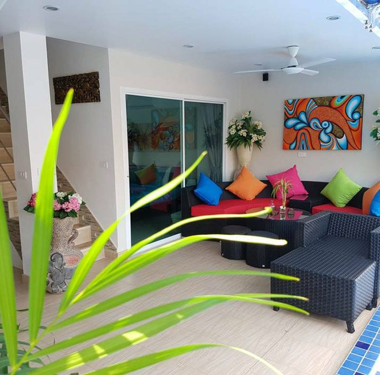 The duplex unit has three queen bedrooms each fitted with 42â Cable TV and DVD Player. A covered outdoor living area with furniture, its own private pool, fully equipped open plan kitchen with alfresco dining, a large Cable TV, DVD Player and surround sound system. On the upper open terrace, you can enjoy a sunbath or catch up on your reading with stunning views of the tall palm trees and the sea. Private parking space is also available just next to the duplex.