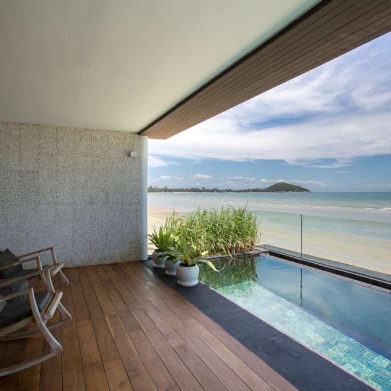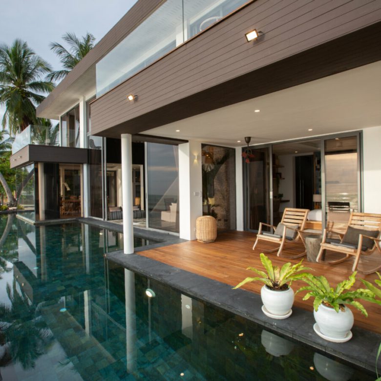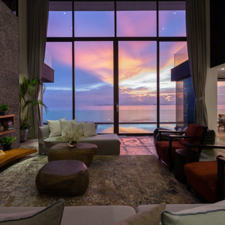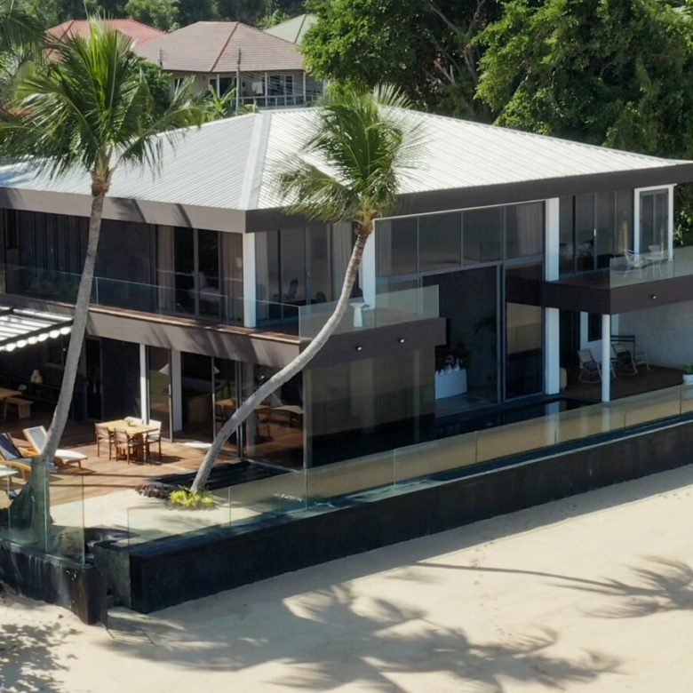 Dreams don’t come any higher than this opulent beachfront villa set in paradise. This stands sentinel on the palm fringed white sandy beach. With fantastic views from amazing terraces, unforgettable tropical sunsets, a spectacular infinity pool and a luxurious interior makes this one of Koh Samui’s most sought after properties. Here you can enjoy a superb blend of tropical living with modern elegance in a calm, refreshing and relaxing atmosphere that has been created by innovative architectural design and a harmonious blend of modern and natural interior furnishings.