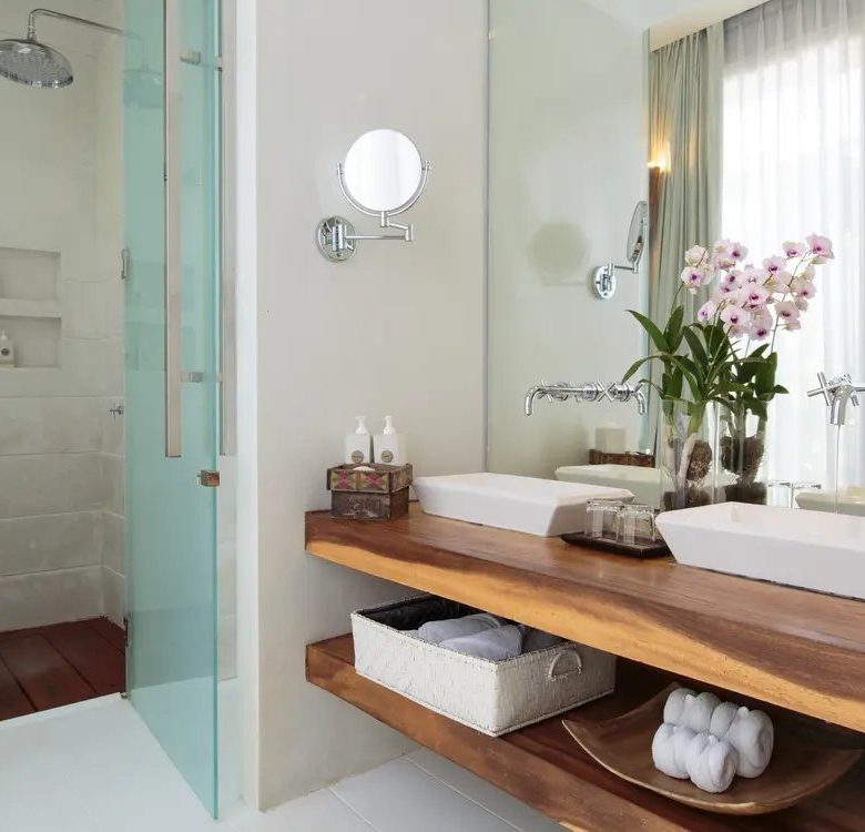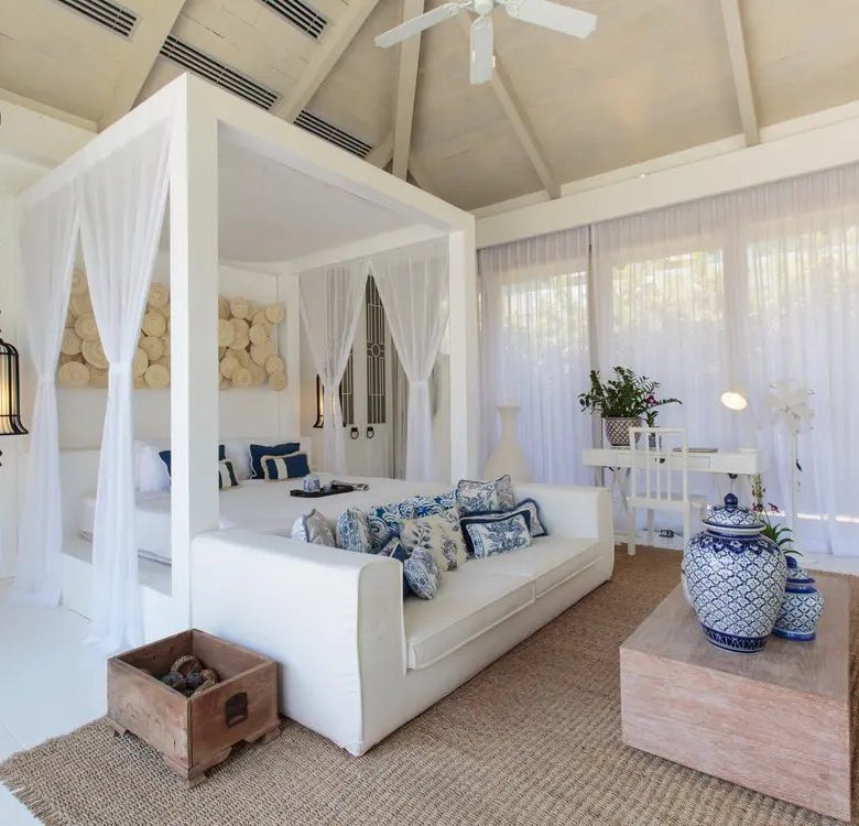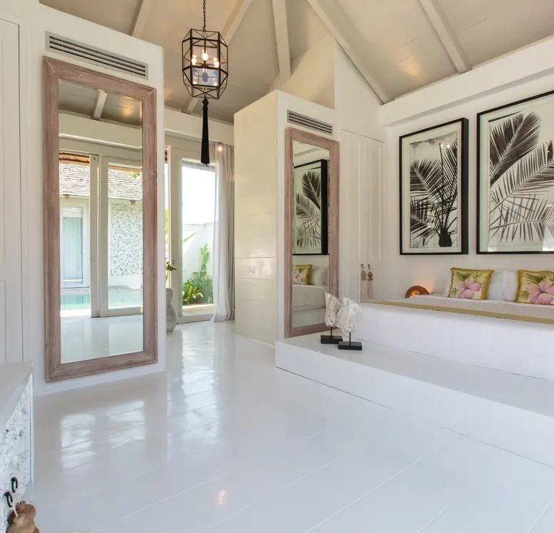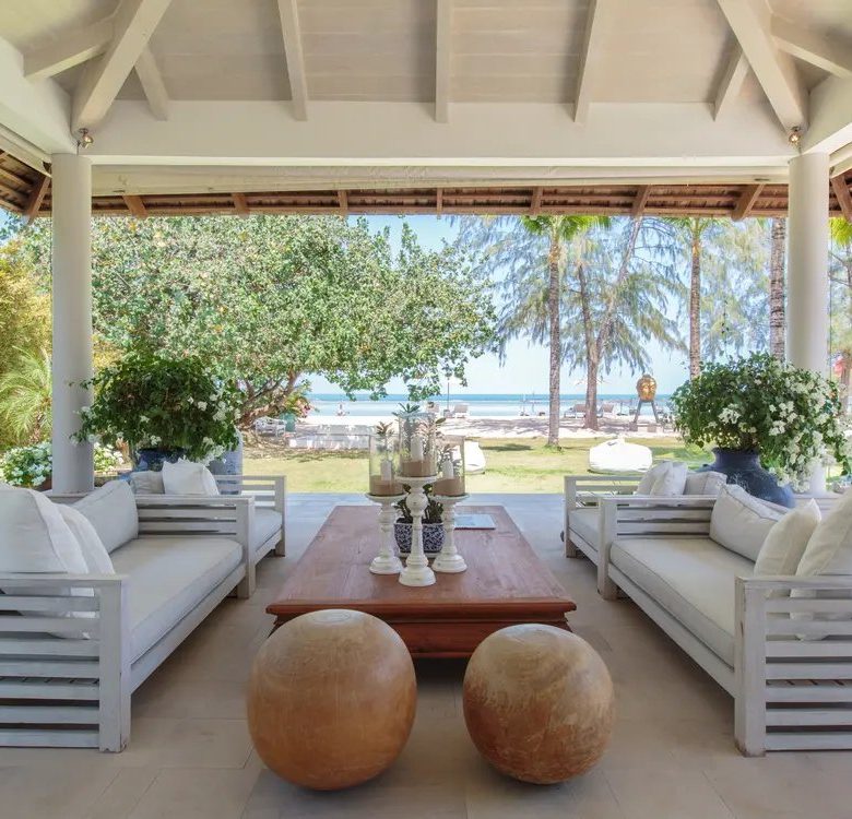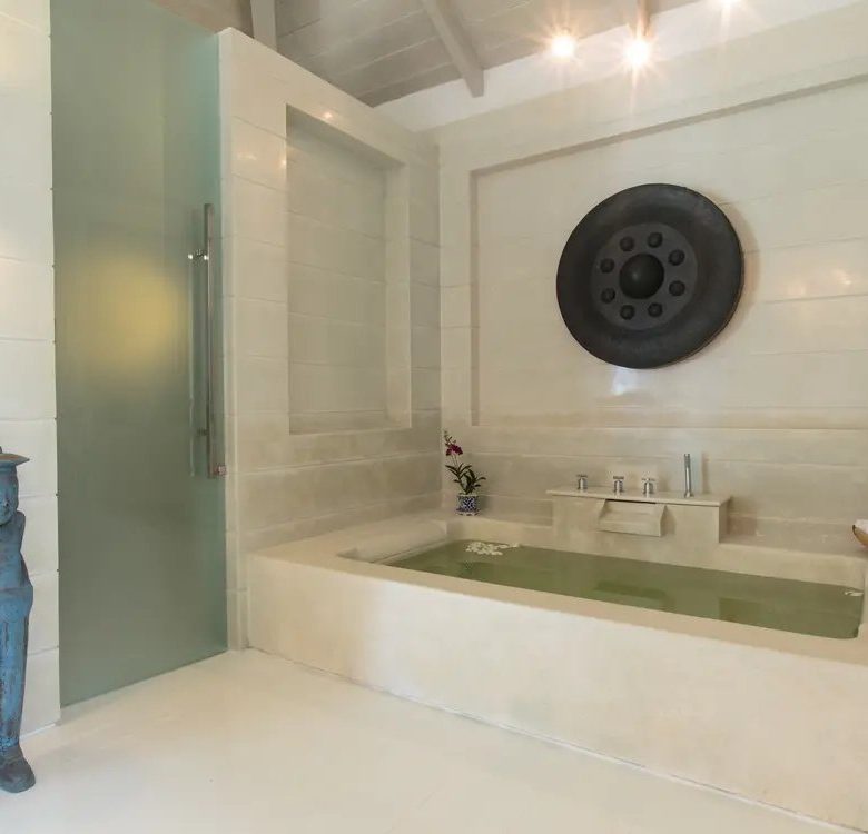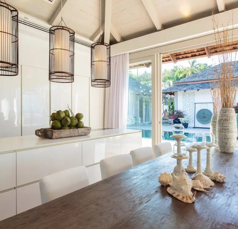 The palatial proportions of this villa include high vaulted wood-panelled beamed ceilings. The building is roofed with cedar shingles and all rooms have sliding glass walls that open to verandas on the pool deck. The high ceilings are painted white, giving all 6 bedrooms brightness and a clean, modern feel.