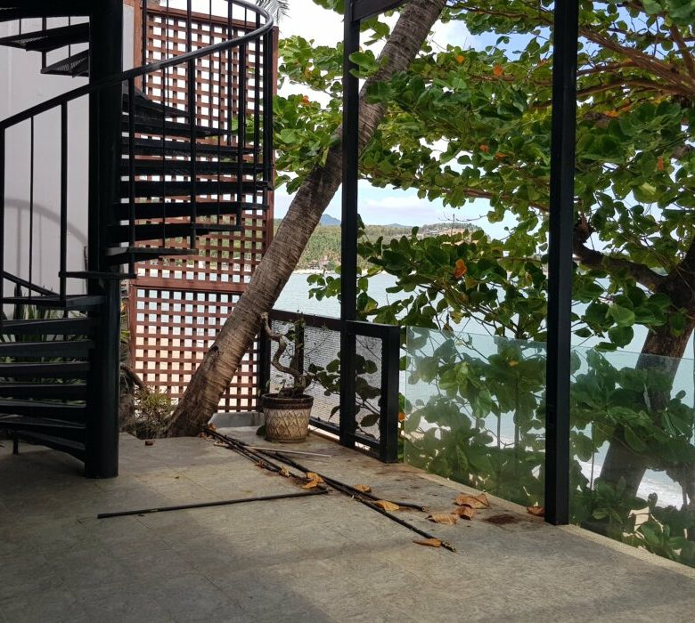 This is a rare opportunity to own a beachfront villa in the popular area of Bangrak Koh Samui. This villa has 4 ensuite rooms, a reception, a kitchen, an upper-level terrace, and two large rooms downstairs with a patio and glass patio doors that open to the beach.