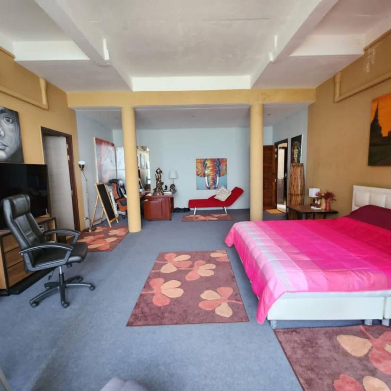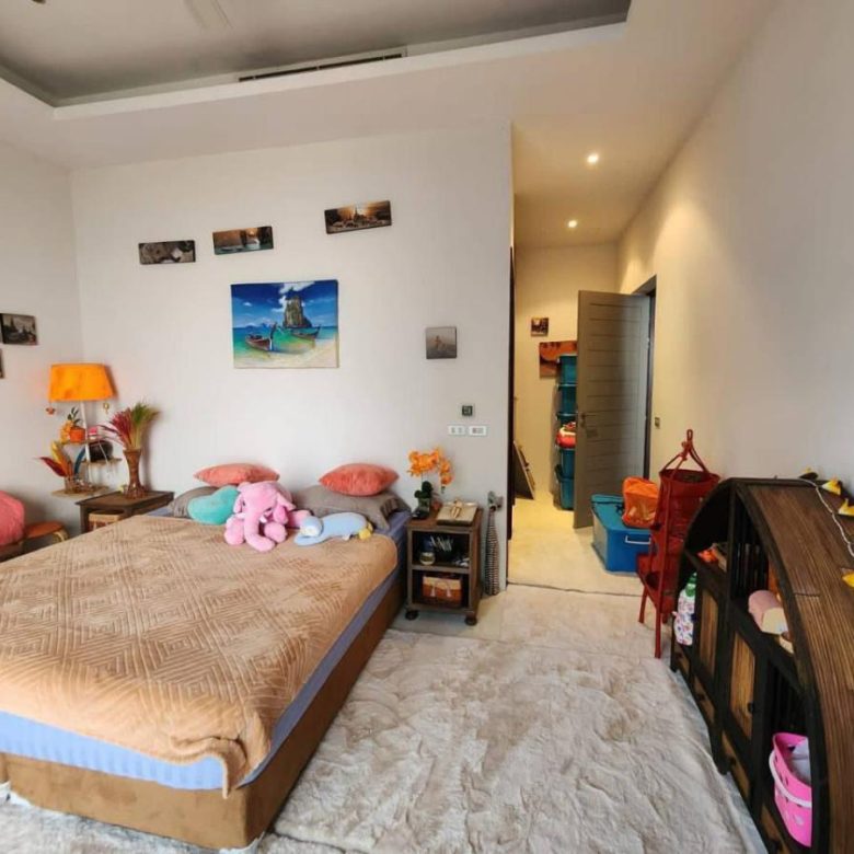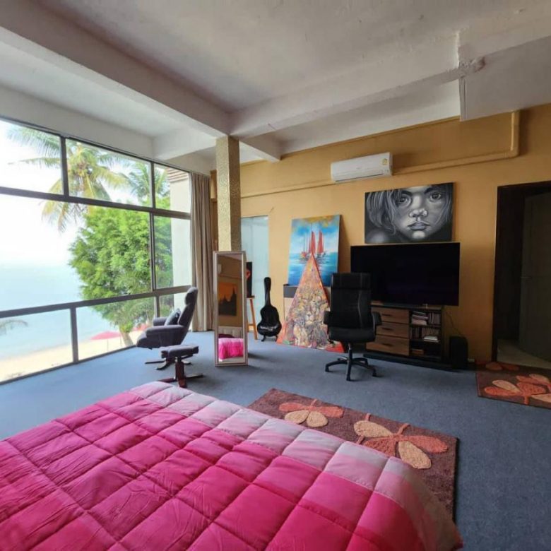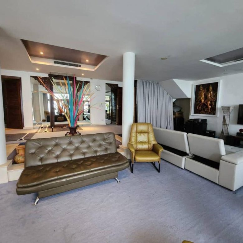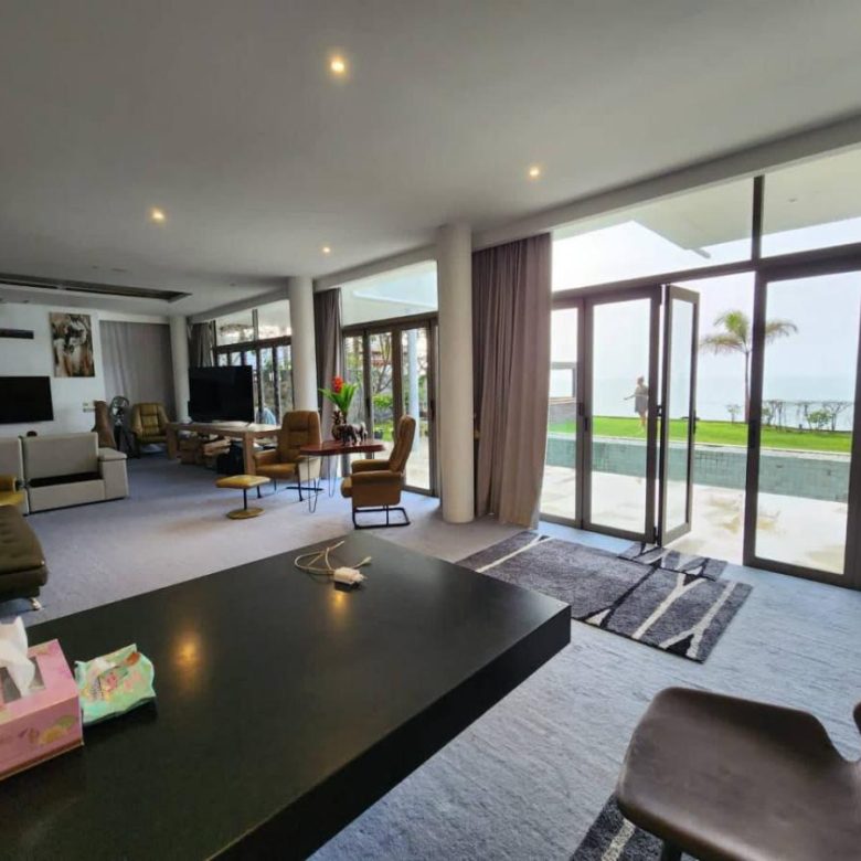 The villa currently offers 4–6 bedrooms, depending on how one chooses to configure the bedroom layouts, along with spacious living areas and a private covered parking space. While the property requires renovation, its generous scale, beachfront setting, and secluded atmosphere in a tranquil residence make it an ideal canvas for redesign and transformation into a modern retreat.