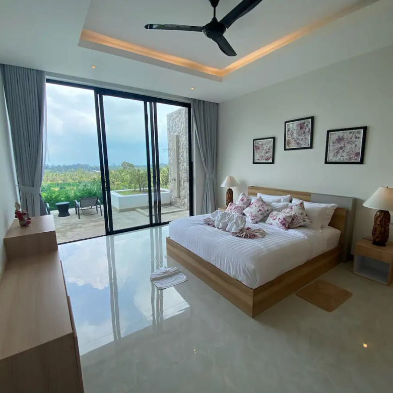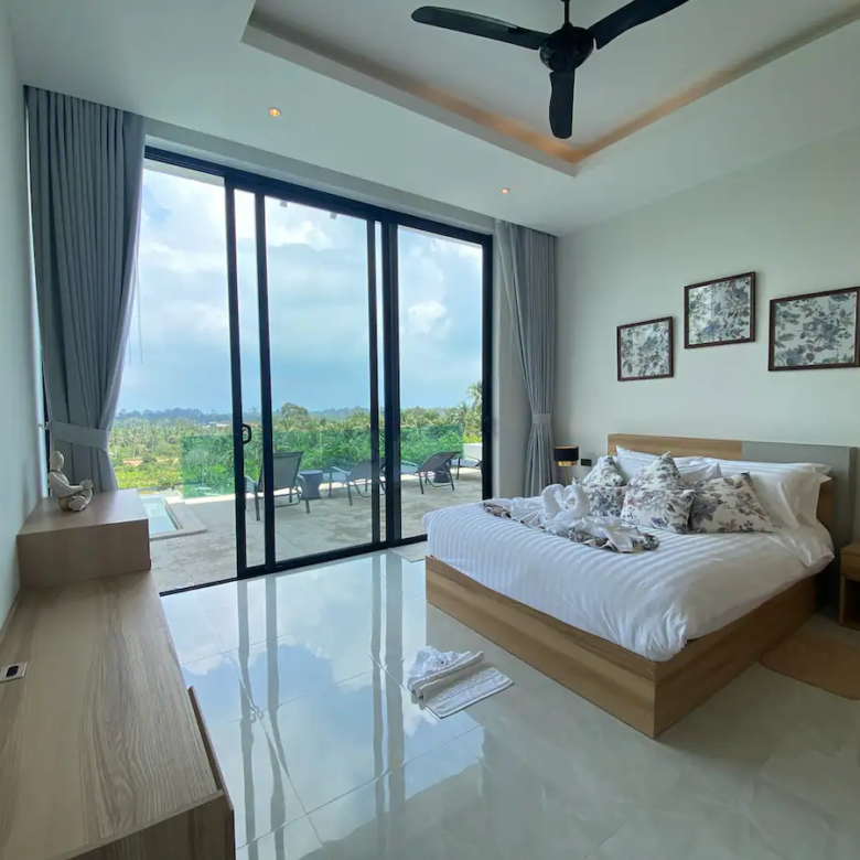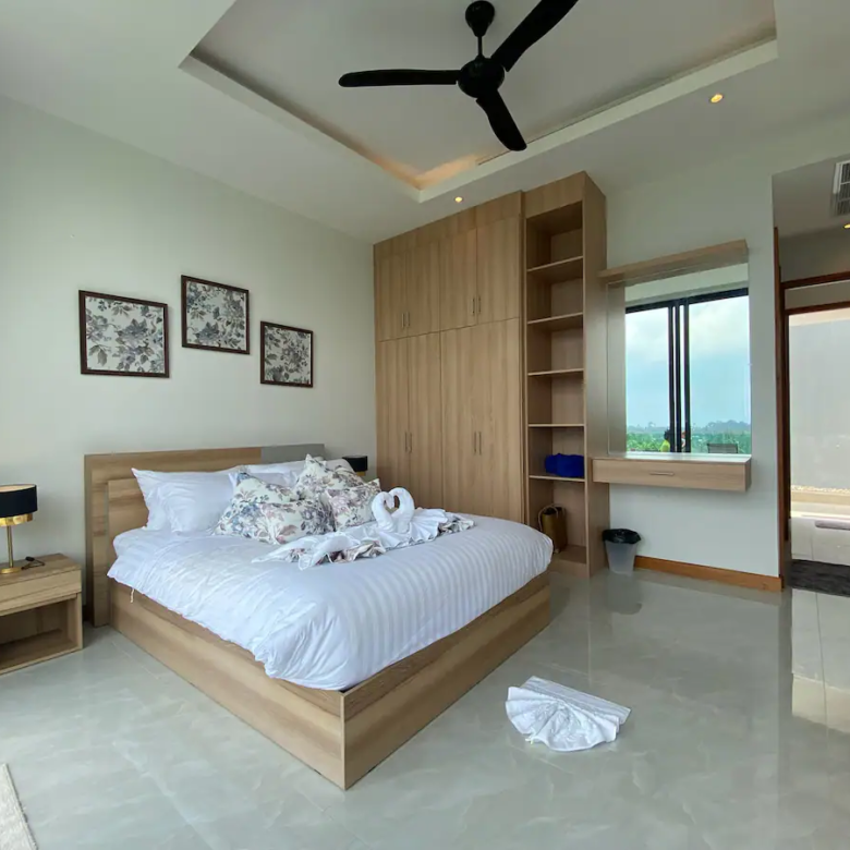 All ensuite bedrooms dispose of built-in wardrobe. The bedrooms and living areas are showcasing floor to ceiling glass windows allowing you to enjoy the natural beauty of this place and admire at daylight the view over the Mae Nam plain till to the Gulf of Thailand as well as the starry sky at night.