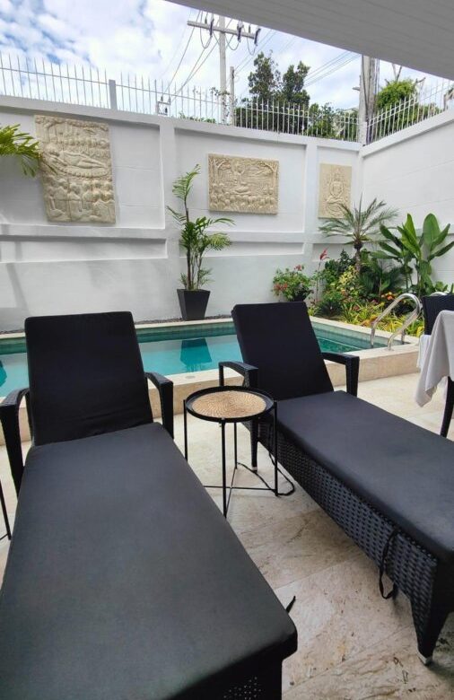 Beautiful modern open-plan villa in a very quiet , convenient and central location which is walking distance to the center of Chaweng as well as spas , hospital , international schools , and supermarkets.