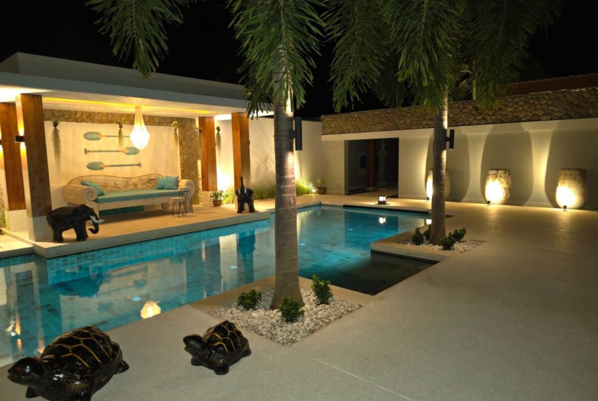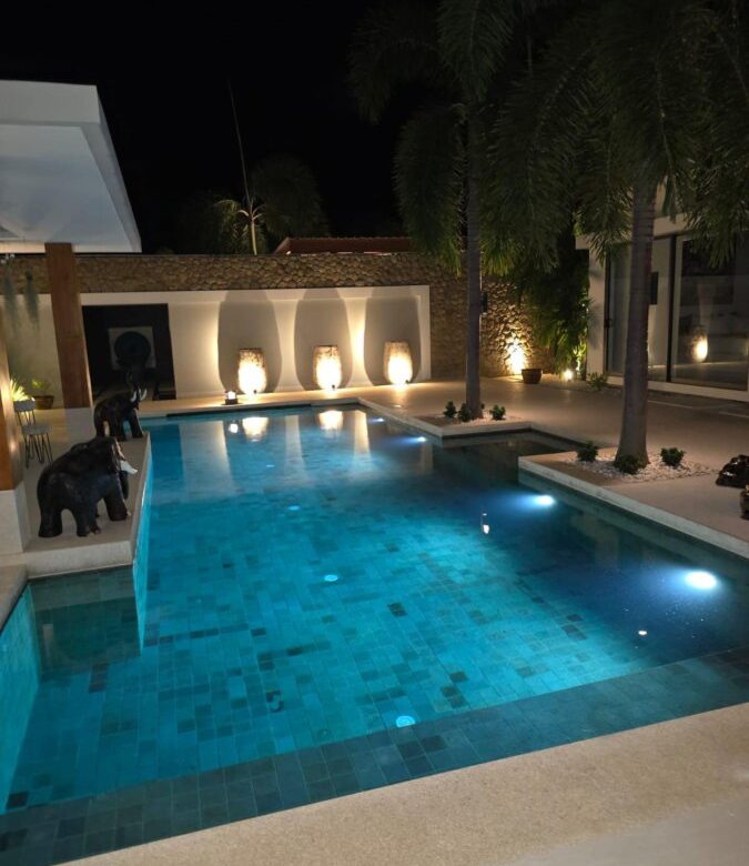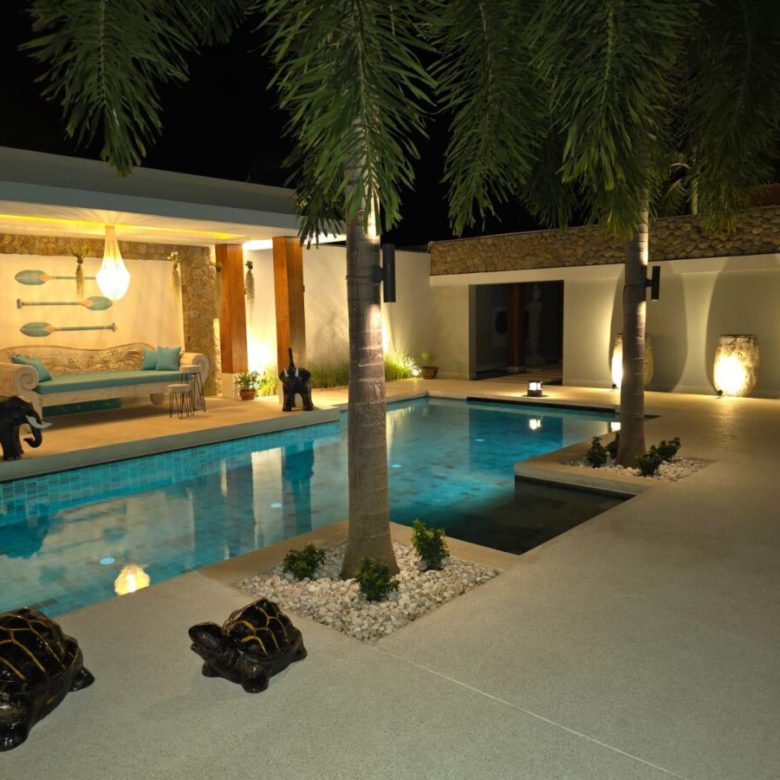 This beautiful villa is surrounded by a wall. In the beautifully designed courtyard there is a saltwater pool with 45 sqm.