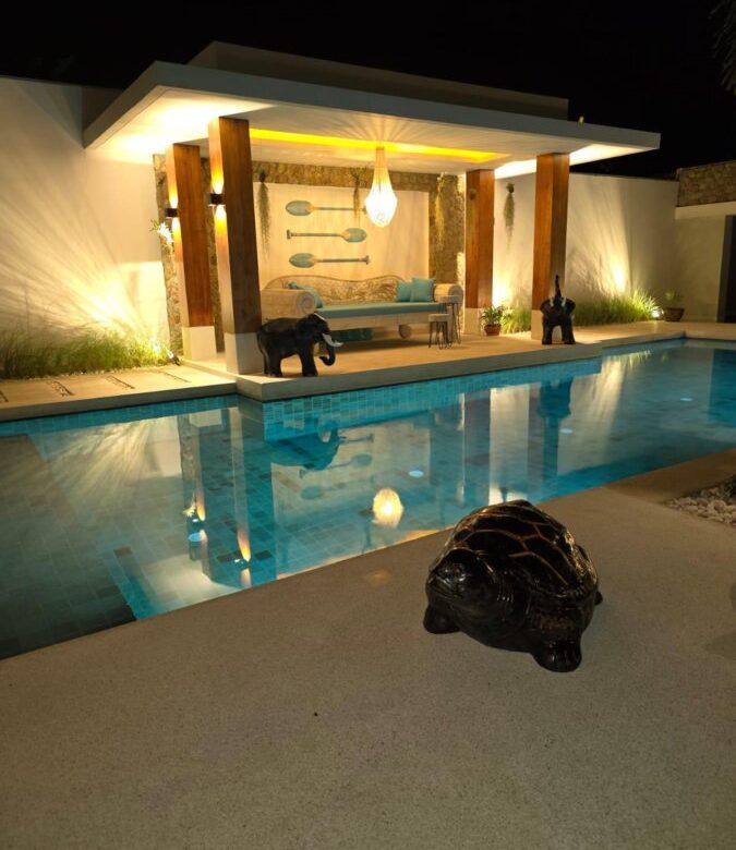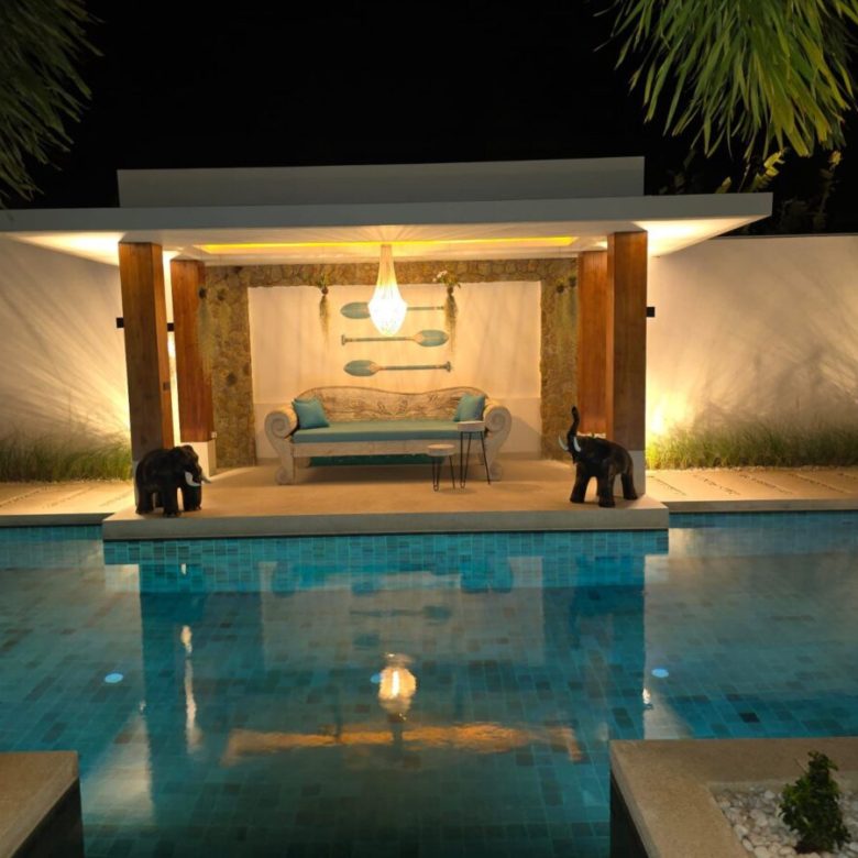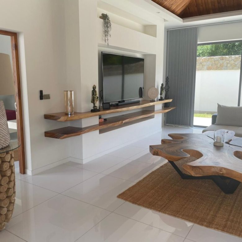 The European kitchen with living room has a lot of charm. In front of the living room there is a covered terrace and a sala. There is also a sala behind the villa that invites you to relax. the villa has a parking space for 1 car and motorcycles.