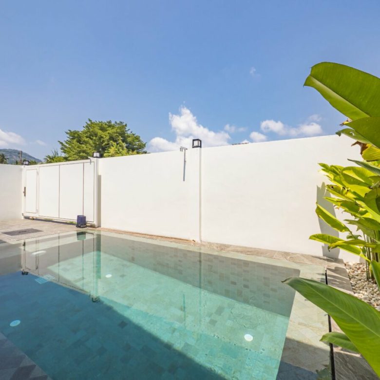 The 5×8 meter swimming pool, adorned with beautiful Bali stones, provides a serene oasis to relax and unwind.