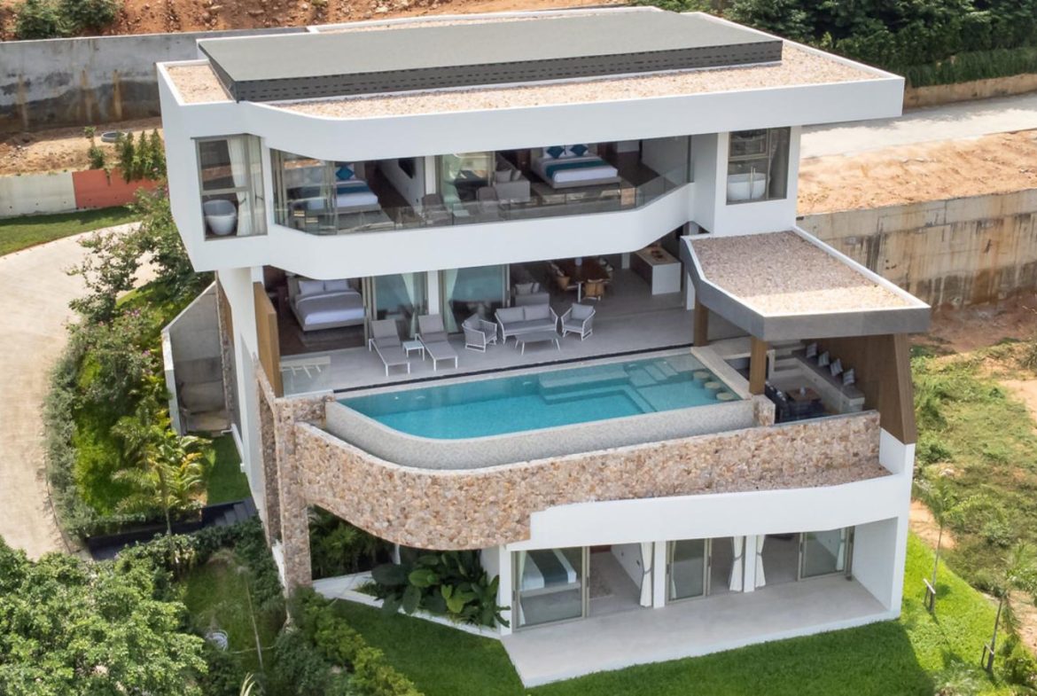 Perched elegantly across three levels, Beso Grande Villa offers expansive living spaces with a seamless indoor-outdoor flow. Designed for families and entertainers alike, this villa features four to five bedrooms, six bathrooms, and a sprawling open-plan living area that connects effortlessly to a private infinity pool and outdoor terraces. Large sliding glass doors frame breathtaking sea views from every key space, filling the villa with natural light and refreshing ocean breezes.