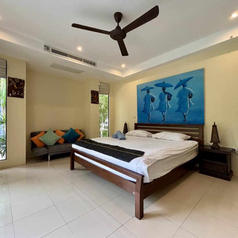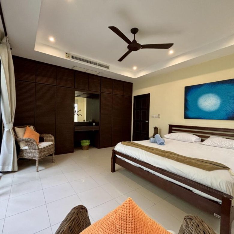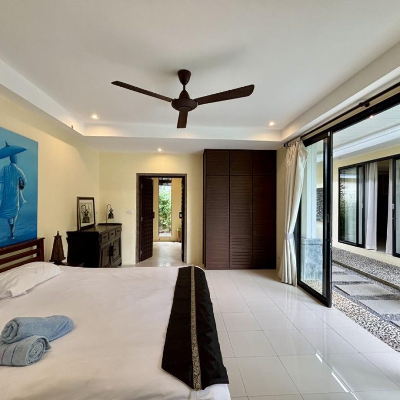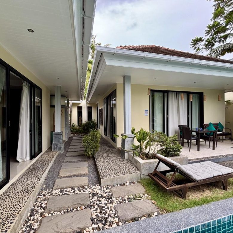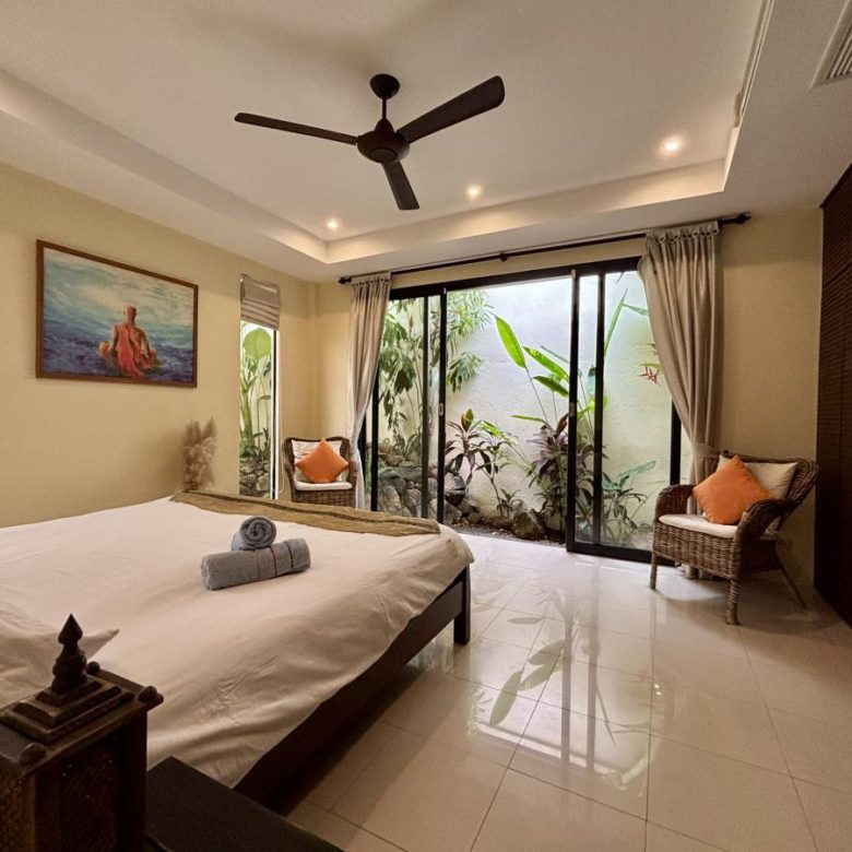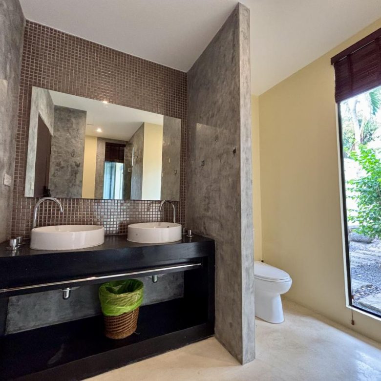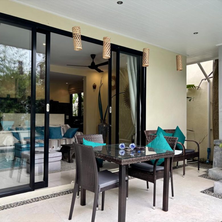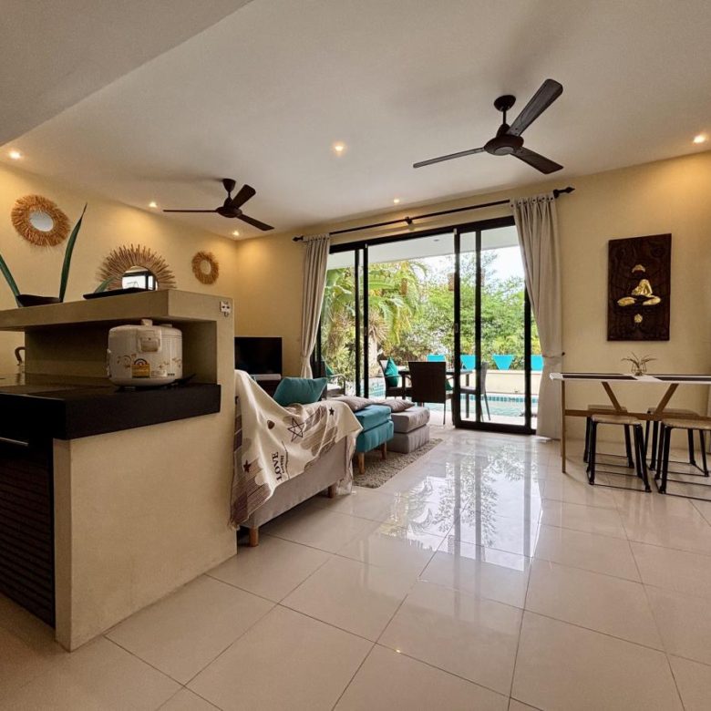 Stepping outside, the heart of the villa reveals itself: a private 8 × 4 meter swimming pool opening to a designed sala. Whether for barbecues, al fresco dining, or relaxed afternoons in the shade, this space embodies tropical island living. Cleverly, the sala also offers future potential : its location makes it the perfect place to add a third bedroom, boosting rental yield and long-term return on investment.