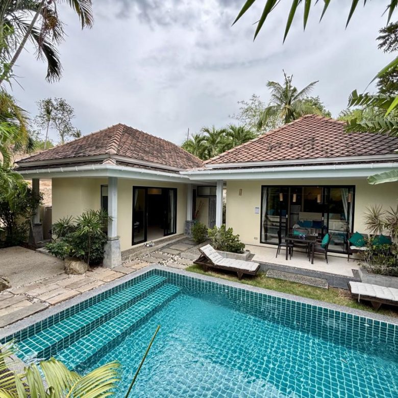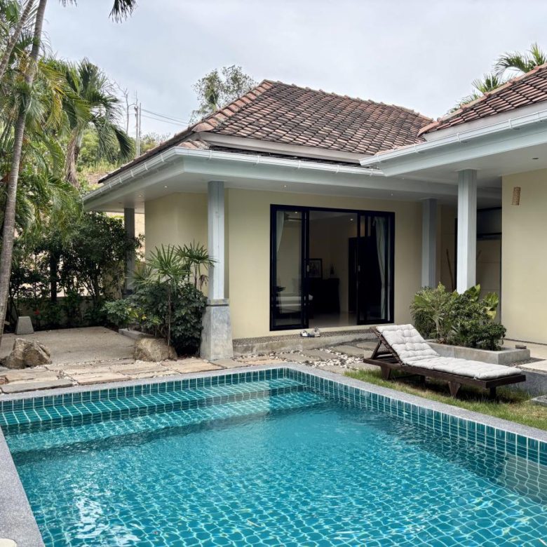 Perched in the peaceful hills of Bophut, Villa Lavanya is a two-bedroom home that balances privacy, flexibility, and modern comfort. Set on a 420 sqm plot with a 220 sqm build area, this charming property is composed of two separate structures, making it ideal for families, couples, or investors seeking a versatile home.