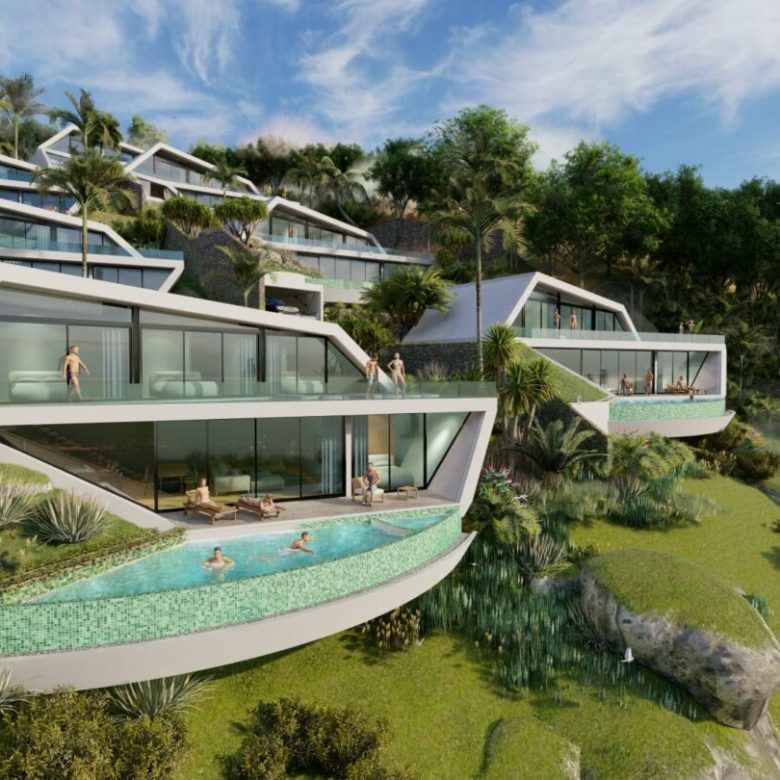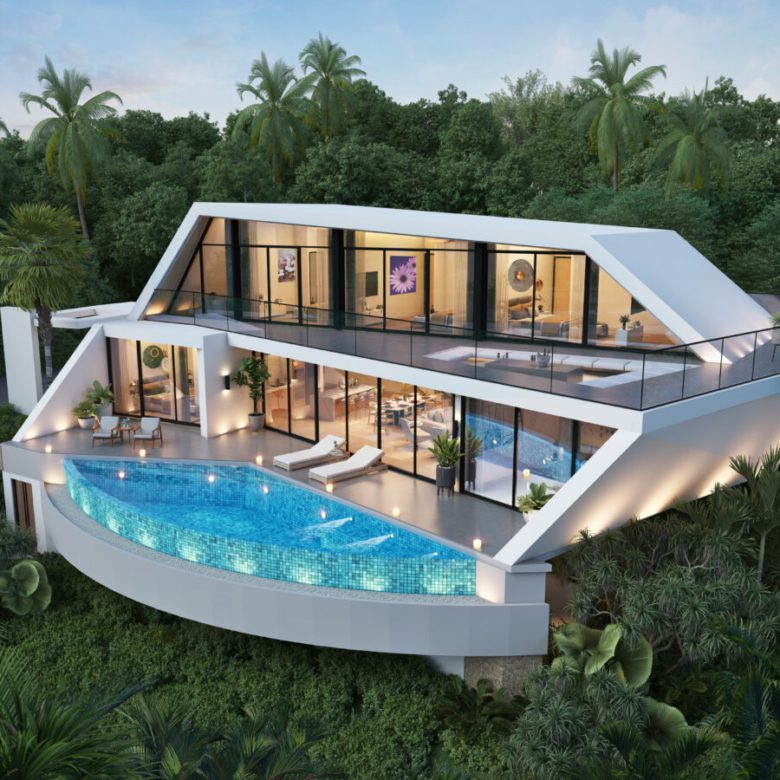The villas are located in the beautiful area Bophut, in 3 minutes drive or a short walk to the coast. Nearby is the best beach of the island – âChaweng Beachâ. Right there is the famous âFishermanâs Villageâ with the greatest restaurants and hotels. Furthermore, all the necessary infrastructure, including