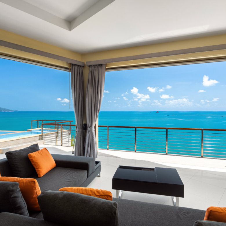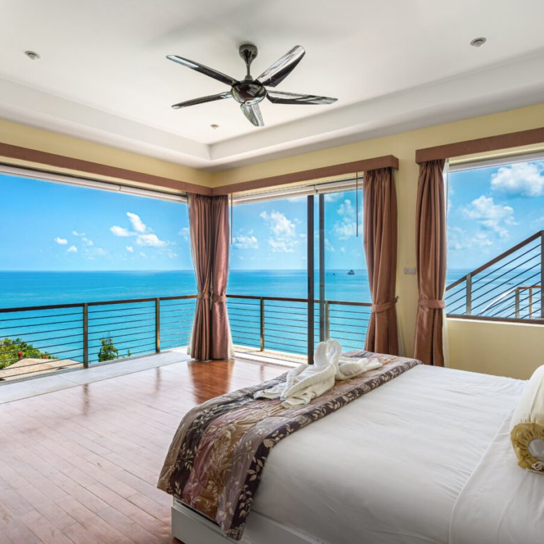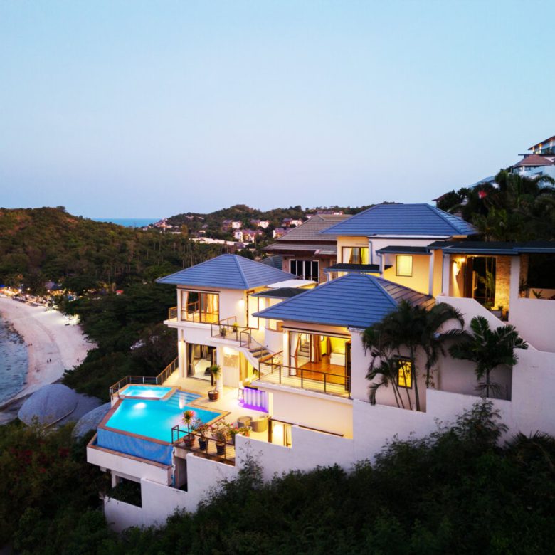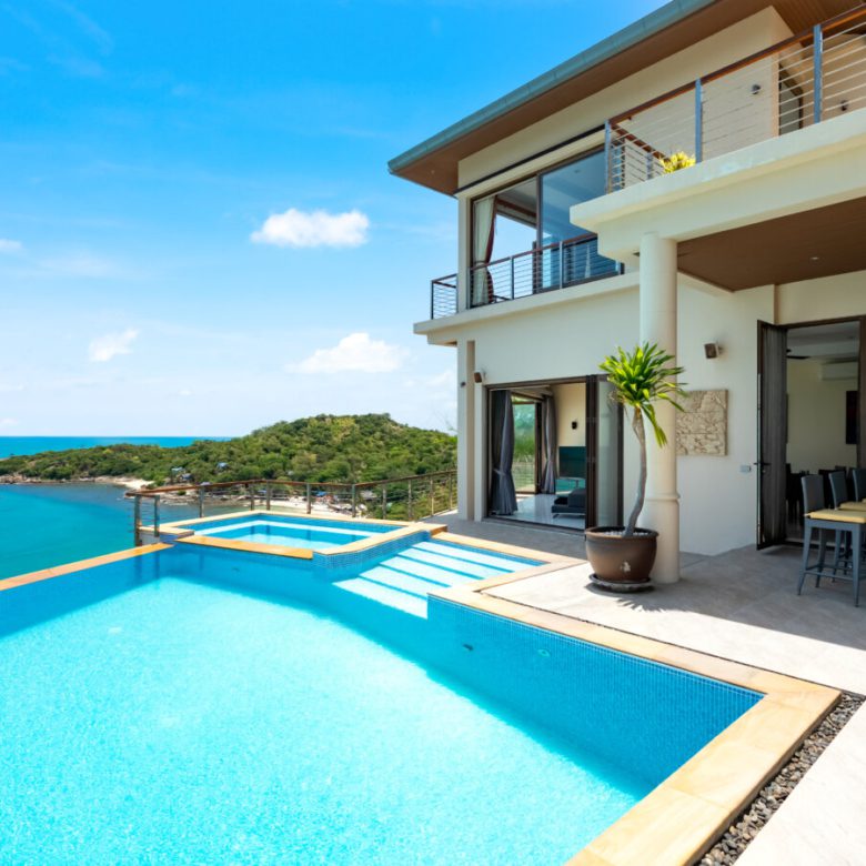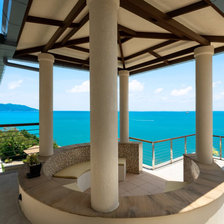 Welcome, a luxurious 3-bedroom villa perched in the serene locale of Plai Laem, Koh Samui. This stunning property spans several floors, offering breathtaking panoramic sea views from every angle, making it an idyllic retreat for those seeking both tranquility and sophistication.