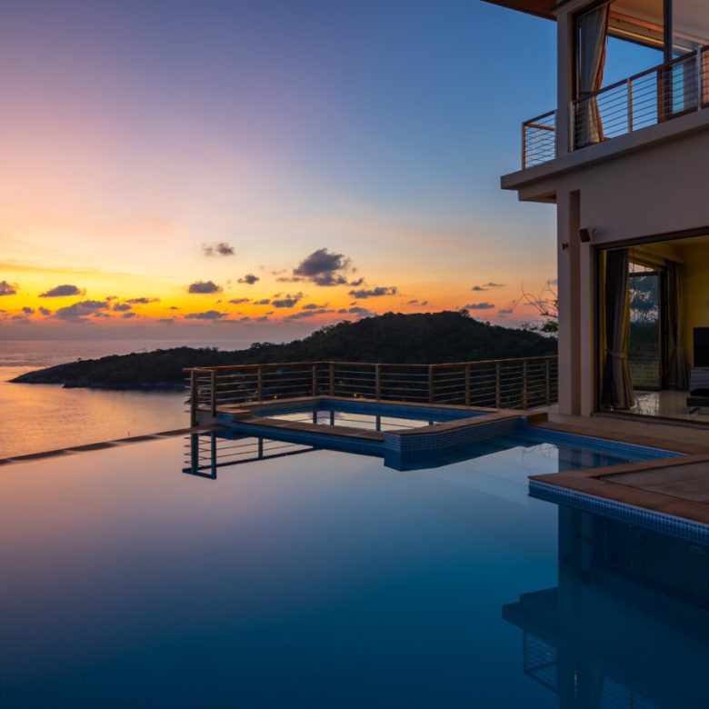 The villa boasts a large infinity pool that seamlessly blends with the horizon, providing an unparalleled experience of swimming amidst the skies and sea. The expansive open-plan living area is designed for comfort and elegance, featuring a fully equipped kitchen perfect for culinary enthusiasts. Full-time on-site staff ensure that your every need is met with impeccable service and hospitality.