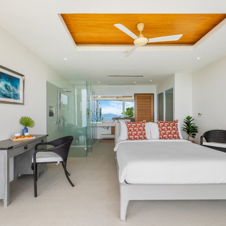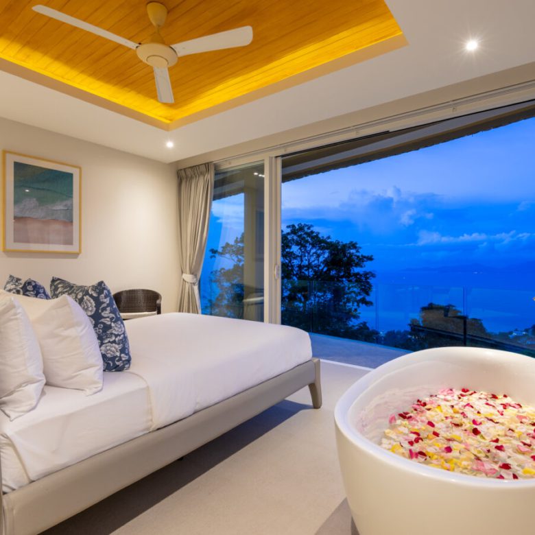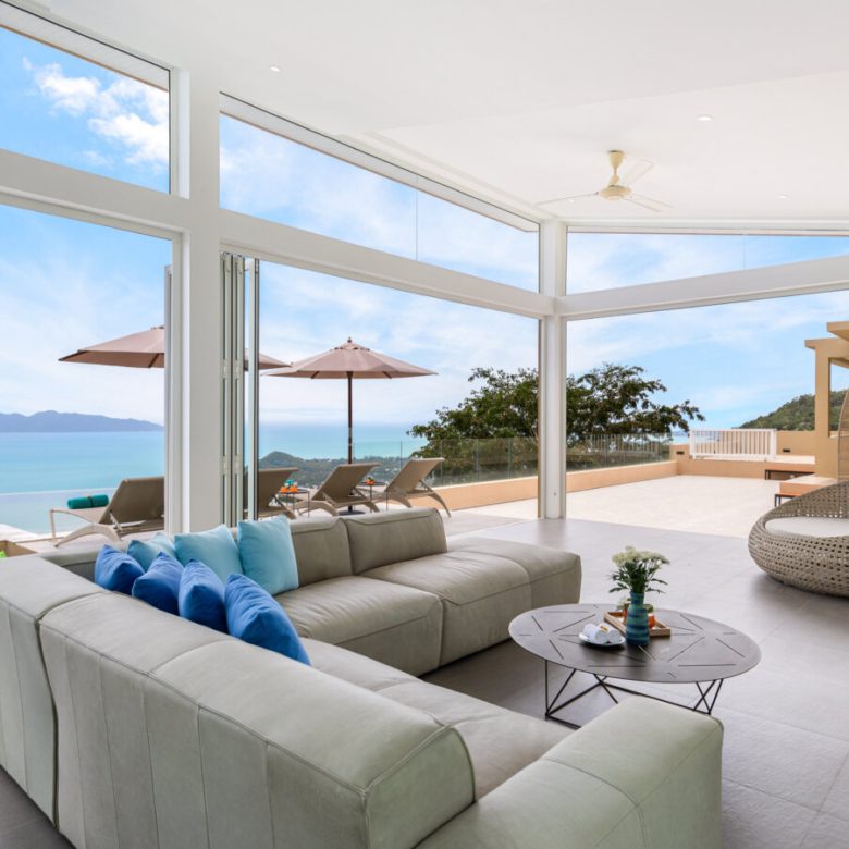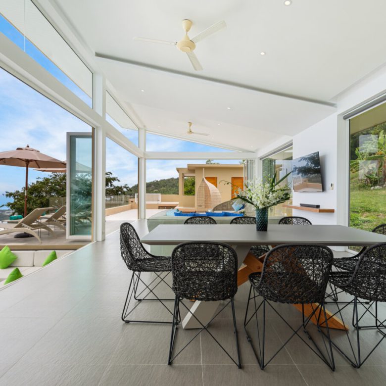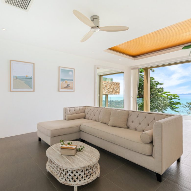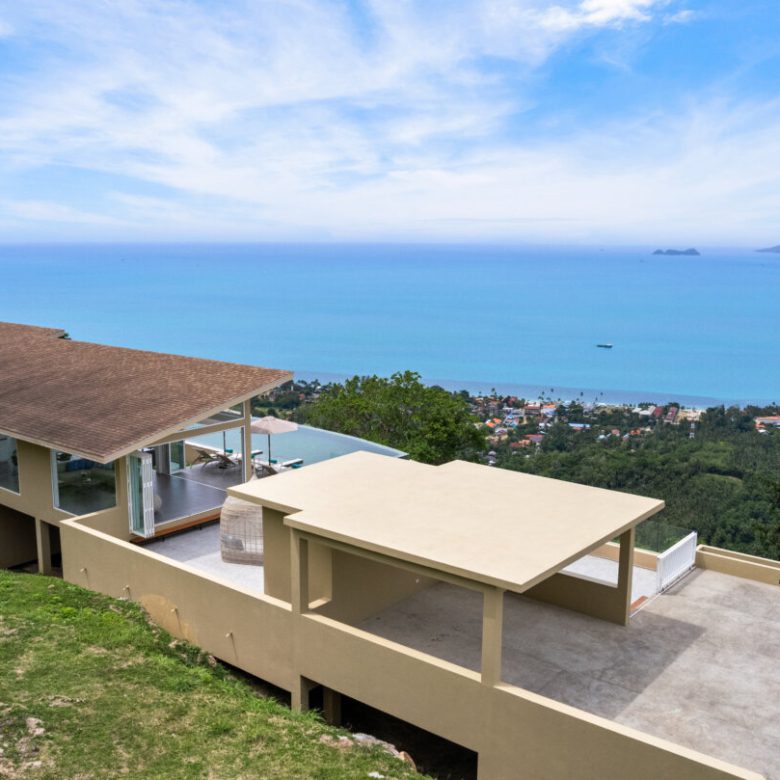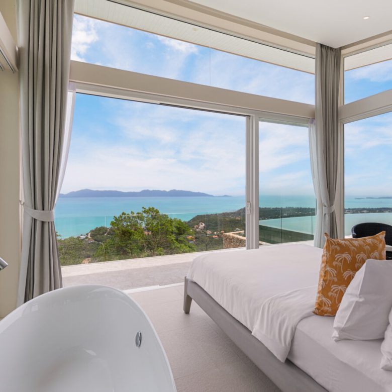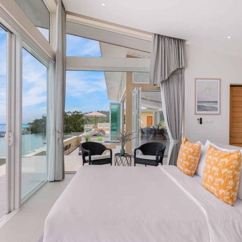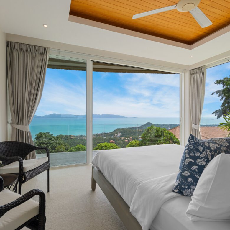 This villa is a stunning 4-bedroom retreat nestled high on a hill in Bang Po, Ko Samui, offering breathtaking panoramic views of the surrounding islands, including Koh Phangan, Koh Tao, and the Ang Thong Marine Park on clear days. Each of the four en-suite bedrooms features expansive sea views, ensuring a serene and luxurious experience for every guest.