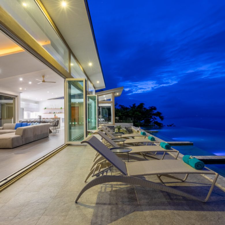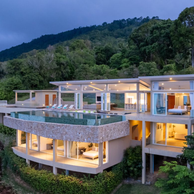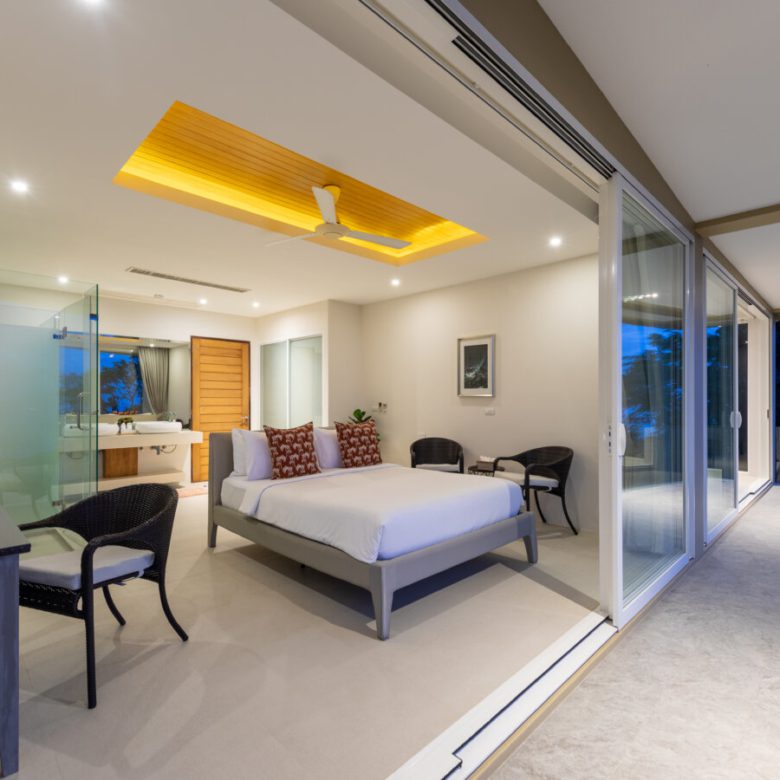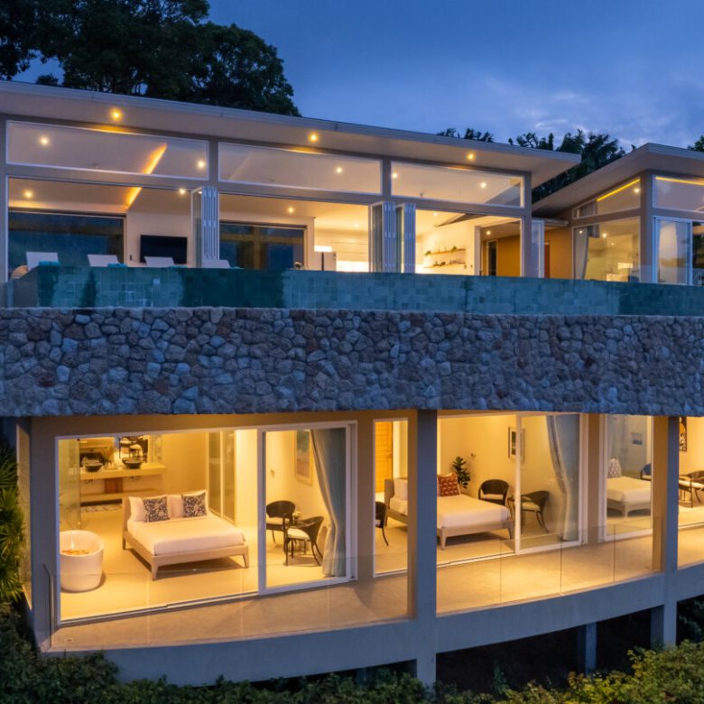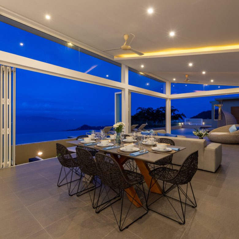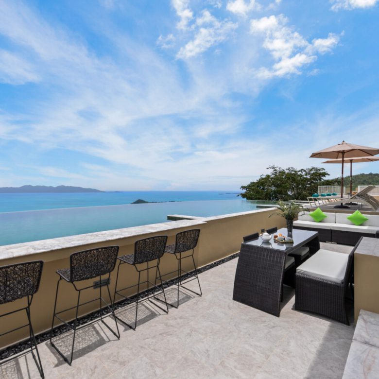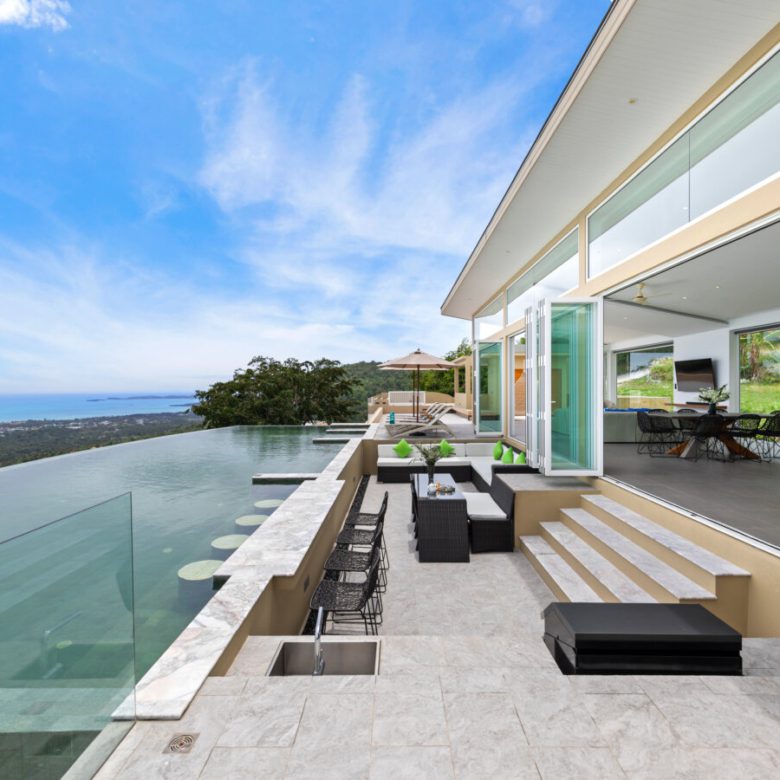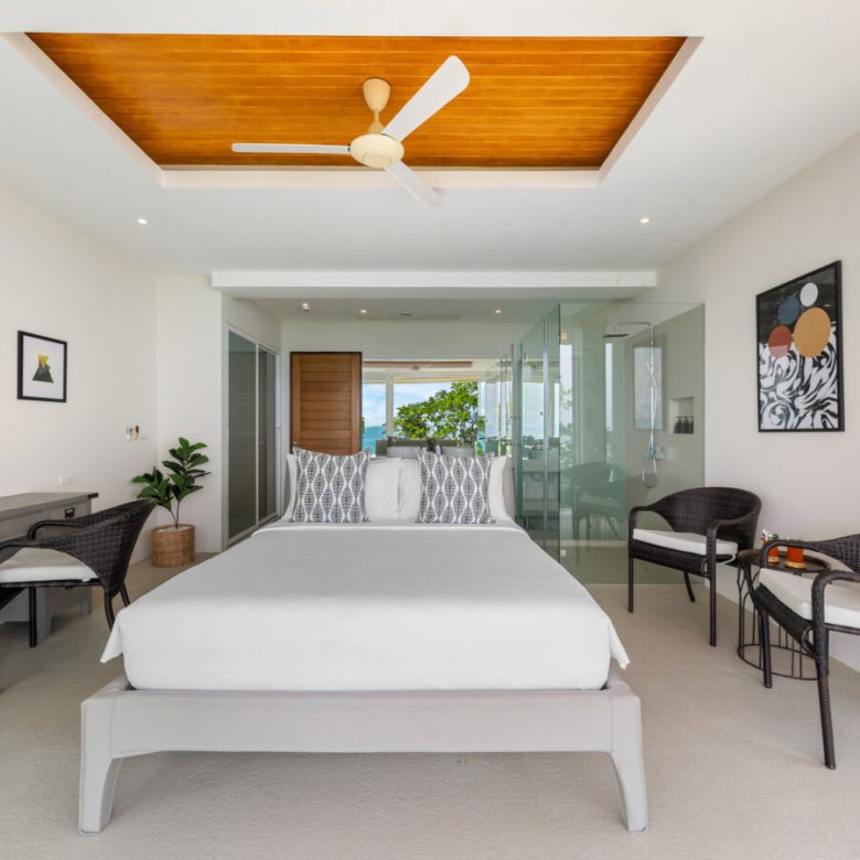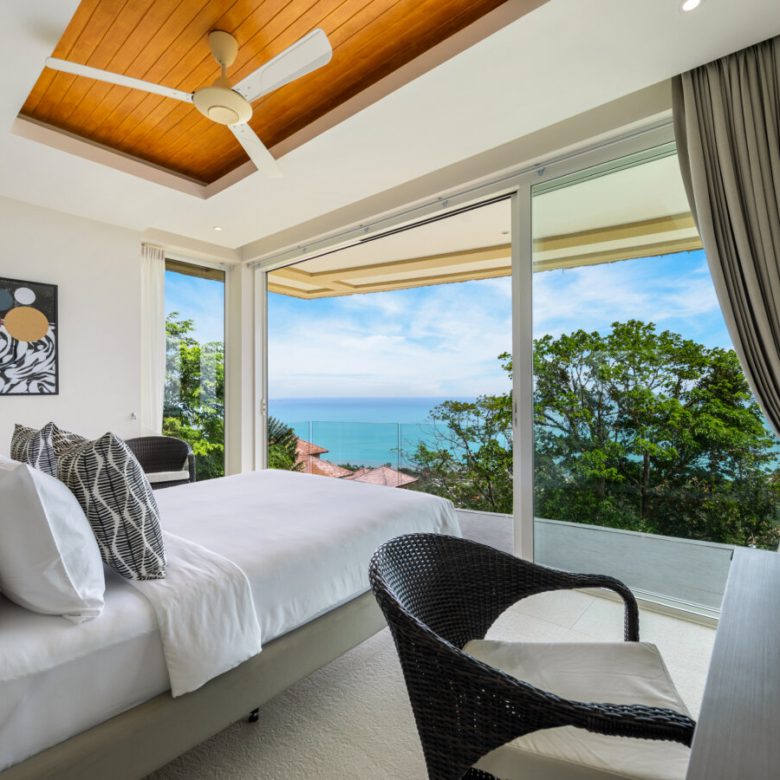 This villa is a stunning 4-bedroom retreat nestled high on a hill in Bang Po, Ko Samui, offering breathtaking panoramic views of the surrounding islands, including Koh Phangan, Koh Tao, and the Ang Thong Marine Park on clear days. Each of the four en-suite bedrooms features expansive sea views, ensuring a serene and luxurious experience for every guest.