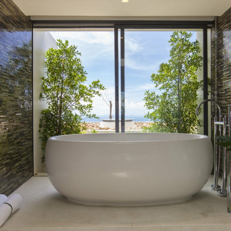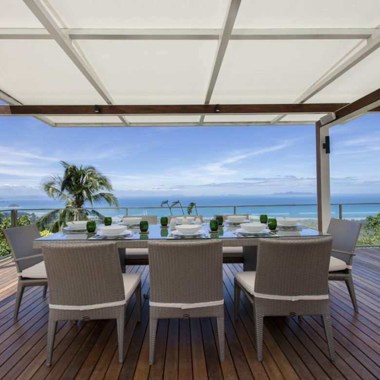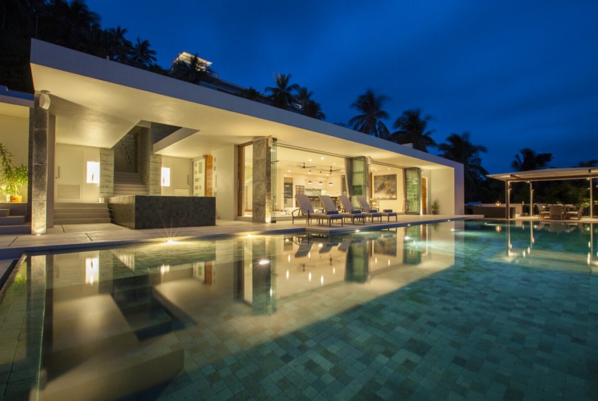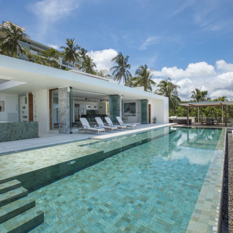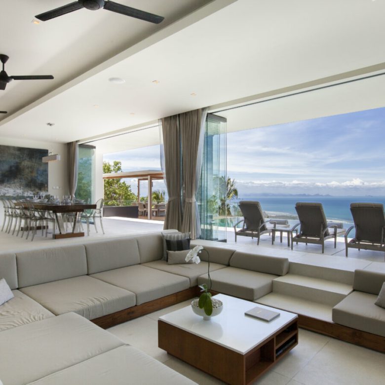 Nestled atop the verdant hills of the island’s north-west, known for its breathtaking sunsets, and just a short 45-minute drive from the international airport, this prestigious vacation retreat offers an unobstructed 180-degree panorama of the entire western coastline, including the captivating Ang Thong National Marine Park and the Five Islands group.