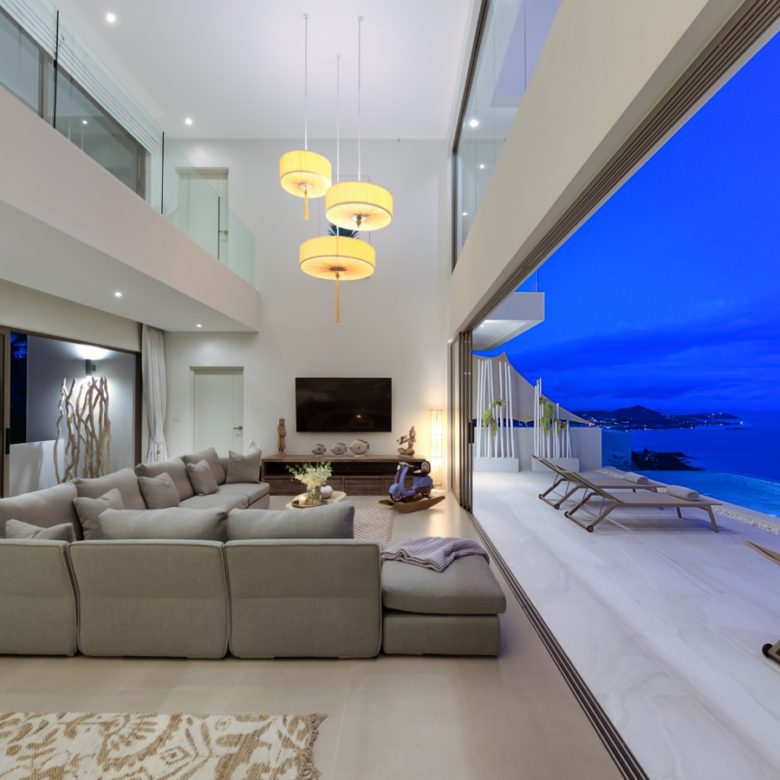 Perched in the exclusive hills of Chaweng Noi, this stunning modern villa offers breathtaking panoramic views over the turquoise bay. Designed with comfort and style in mind, the villa combines contemporary elegance with tropical living.