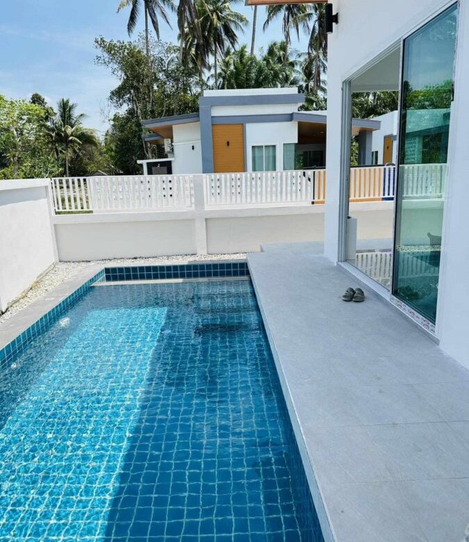 This charming villa built on a plot of 382 SQM is located in a quiet area of ââLipa Noi. It has 2 bedrooms, 2 bathrooms, a living room including lounge, dining room and kitchen area. The living room has direct access to the outside where you can enjoy its 6x3m salt pool. At the back of the house, you will find a large enclosed space with gate which can also be used as parking or a garden. Perfect for pet owners. This villa also has a private covered parking space, water and electricity according to government rates, a Chanote land title and no common fees will be claimed. The villa is located approximately 2km from the main road, 6 minutes from Raja Ferry, 8 minutes from Transport Office, 9 minutes from Lipa Noi Beach, Nikki Beach and Samui Zipline, 11 minutes from Lat Wanon Waterfall and 14 minutes from Namuang Waterfall.
