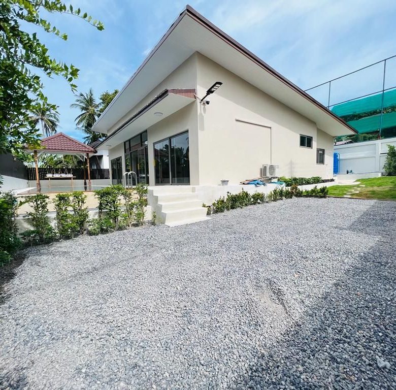 Nestled in the serene neighborhood of Maenam, this exquisite 3-bedroom pool villa is a fine example of tropical living. Priced at 8,500,000 Baht, it’s an ideal haven for an active young couple or family, especially those venturing into homeownership for the first time or those looking for a viable rental investment unit.